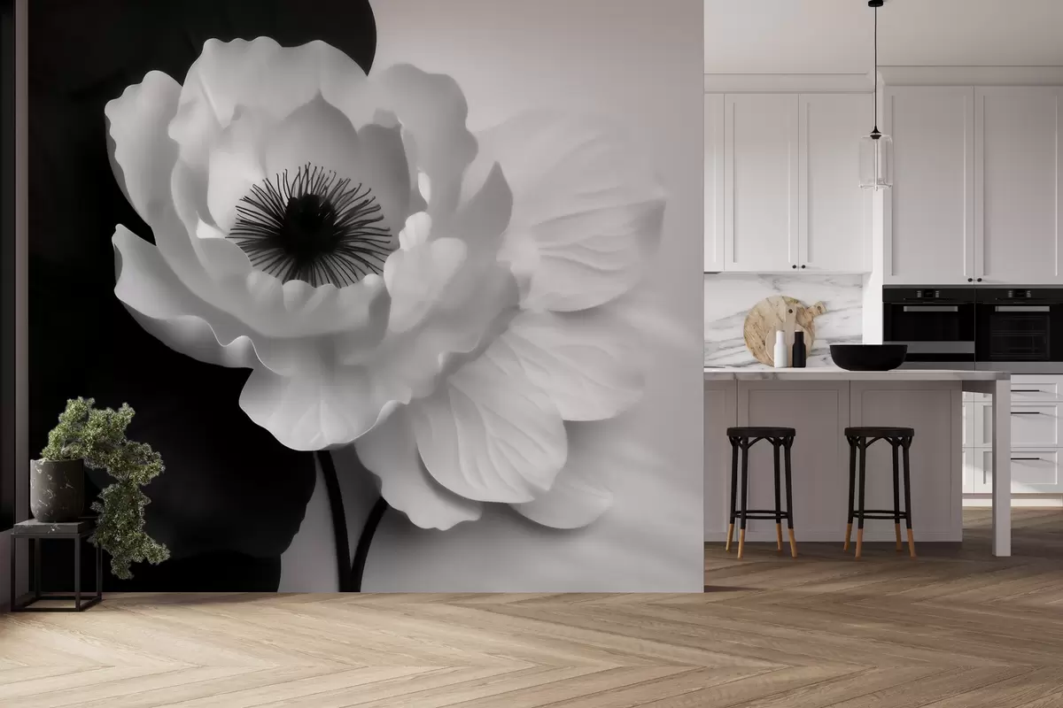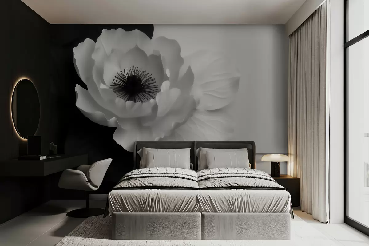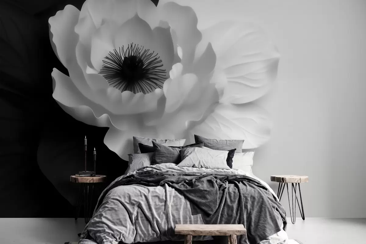 Фототапет Контрастен бял цвят с тъмно сърце на черно-бял фон Nr w09852