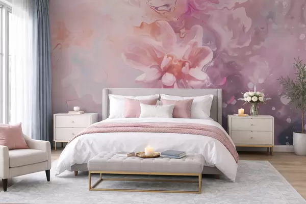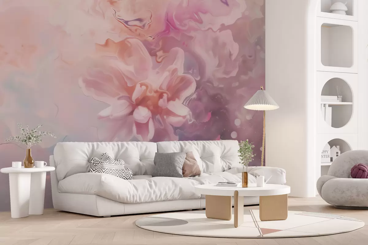 Фототапет Абстрактна композиция с цвете и нежни розови мазки в акварелен стил Nr w09859