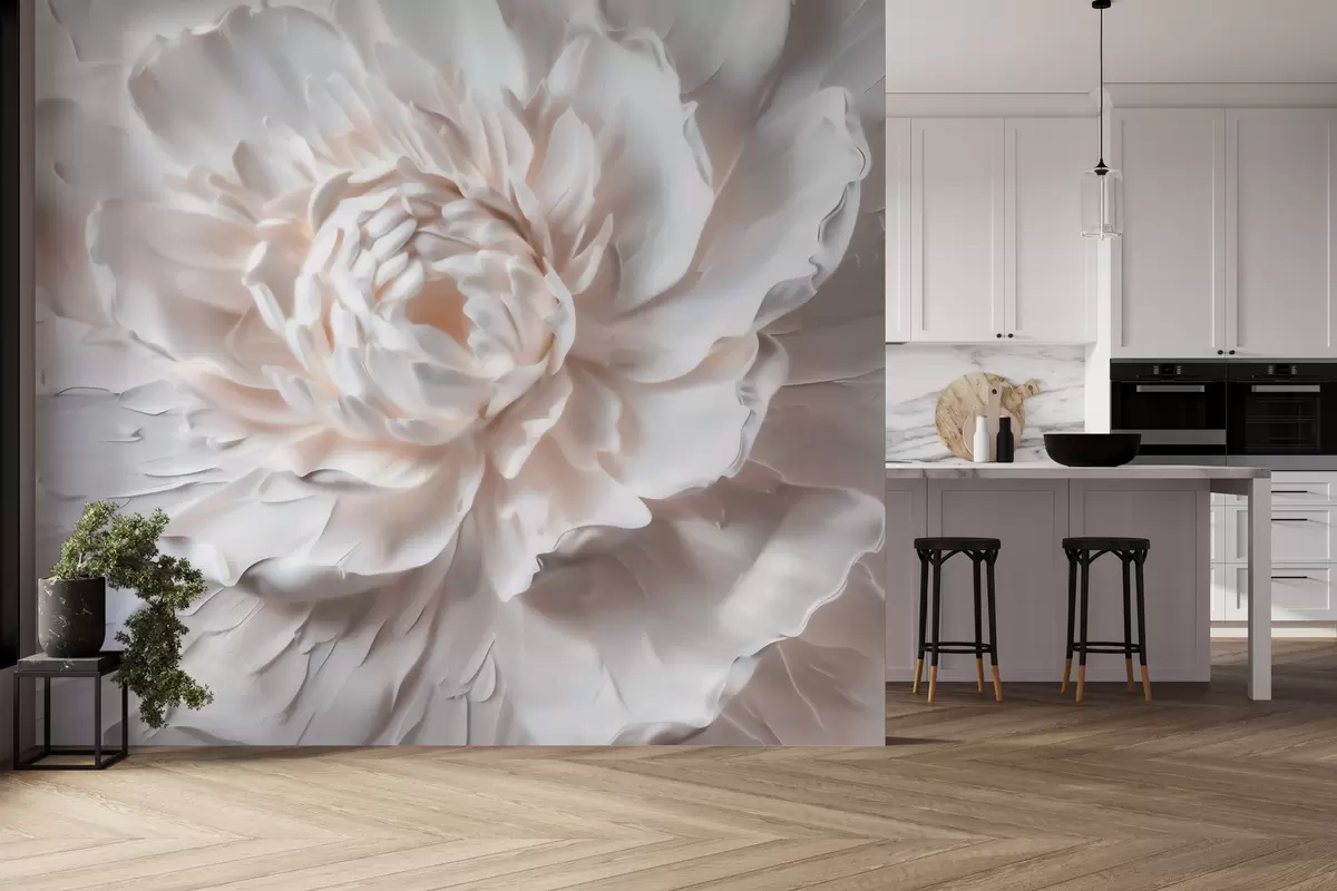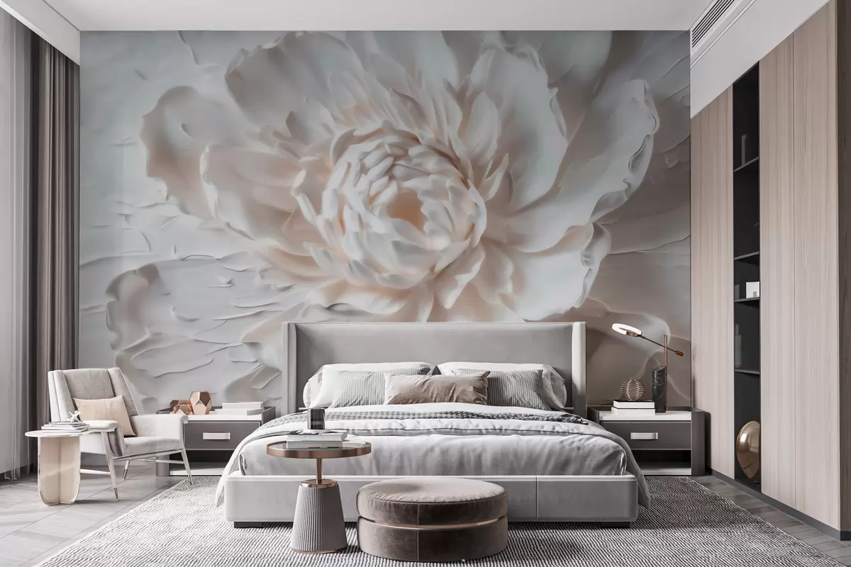Фототапет Деликатен барелеф на цвете с гладки венчелистчета в светли нюанси Nr w09861