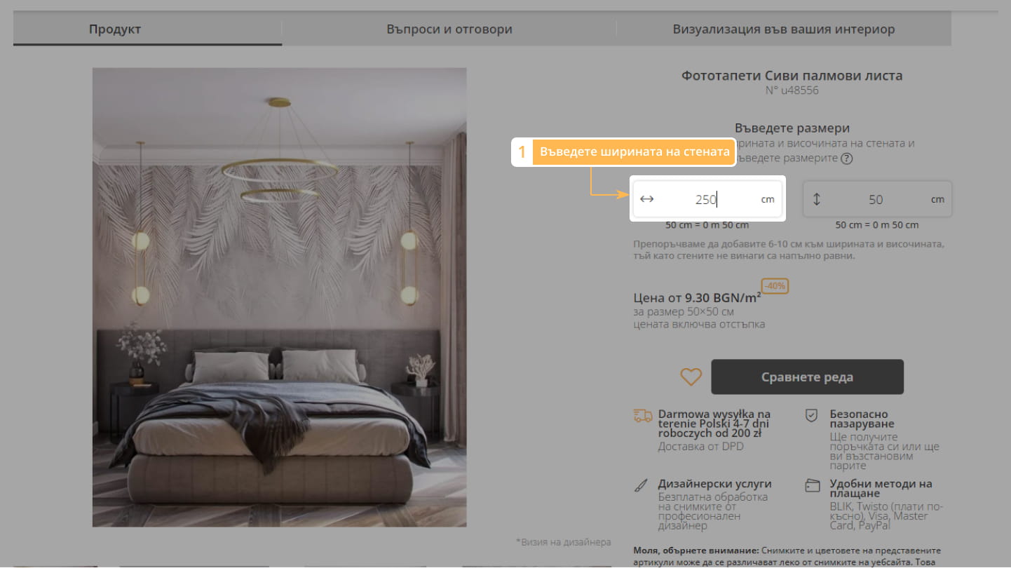 1. Въведете ширината на стената