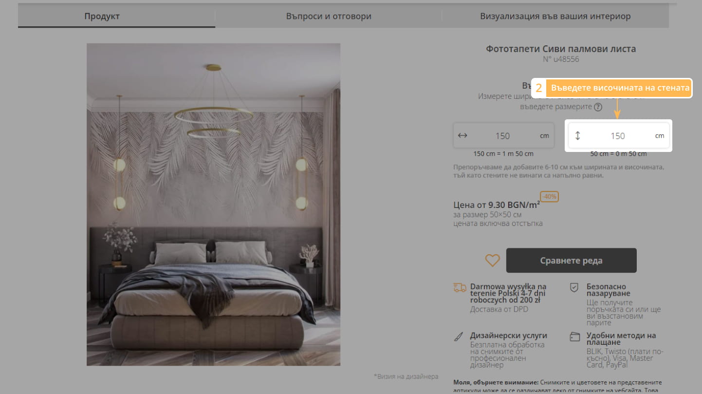 2. Въведете височината на стената