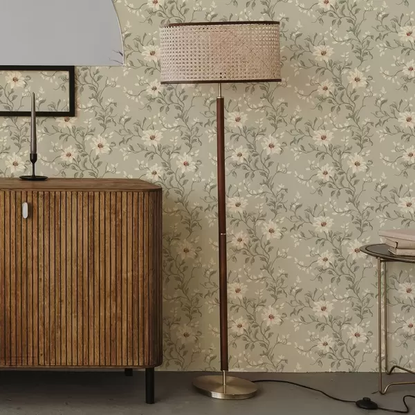 Тапет Бели цветя с извиващи се листа на светъл фон Nr. a00001v1