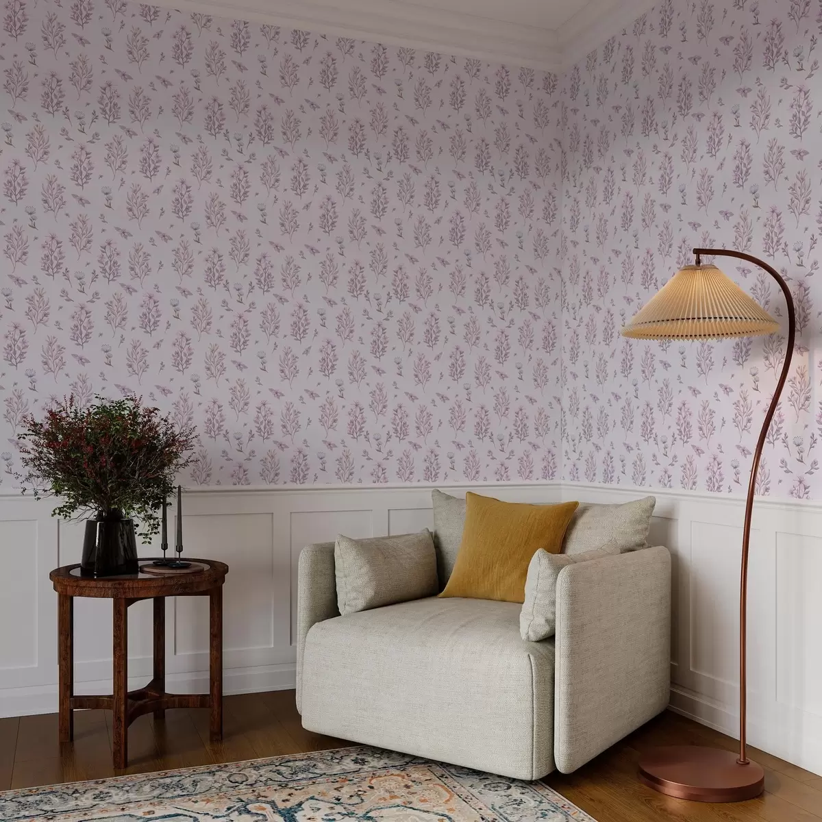 Тапет Деликатни цветя със стъбла на бял фон Nr. a00016