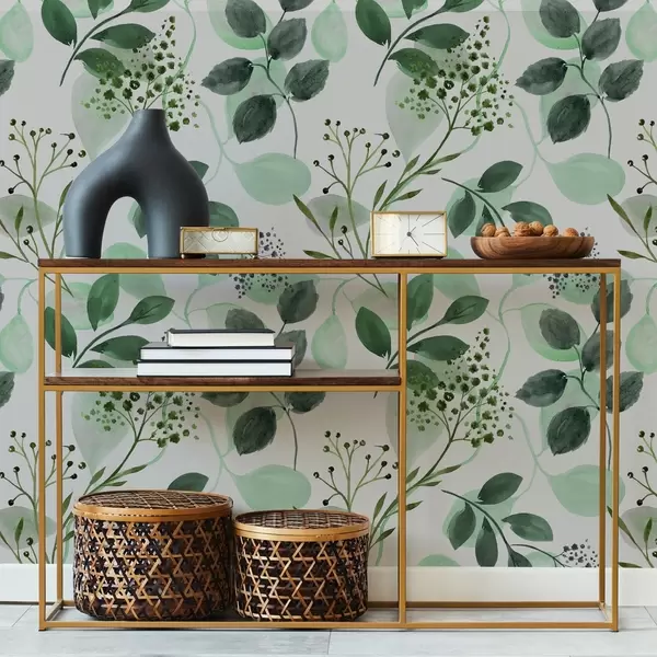 Тапет Есенни листа в акварелен стил в зелени тонове Nr. a00048v1