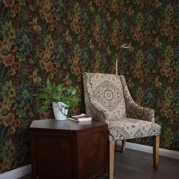Тапет Тъмни цветя и листа на тъмен фон Nr. a00100