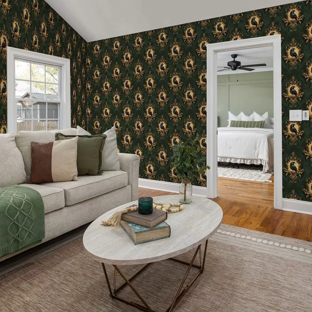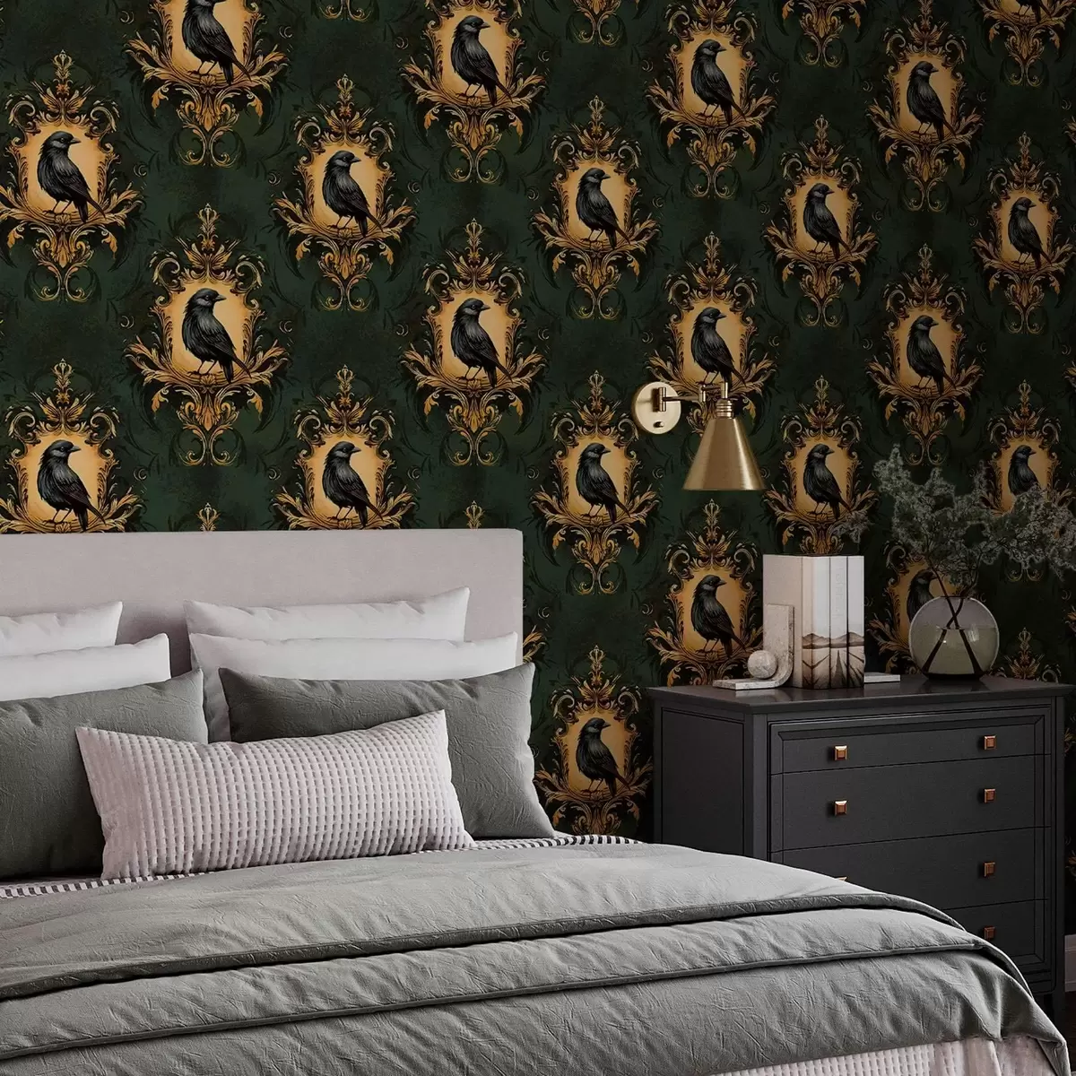 Тапет Врана в рамка на зелен фон Nr. a00105