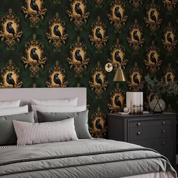 Тапет Врана в рамка на зелен фон Nr. a00105