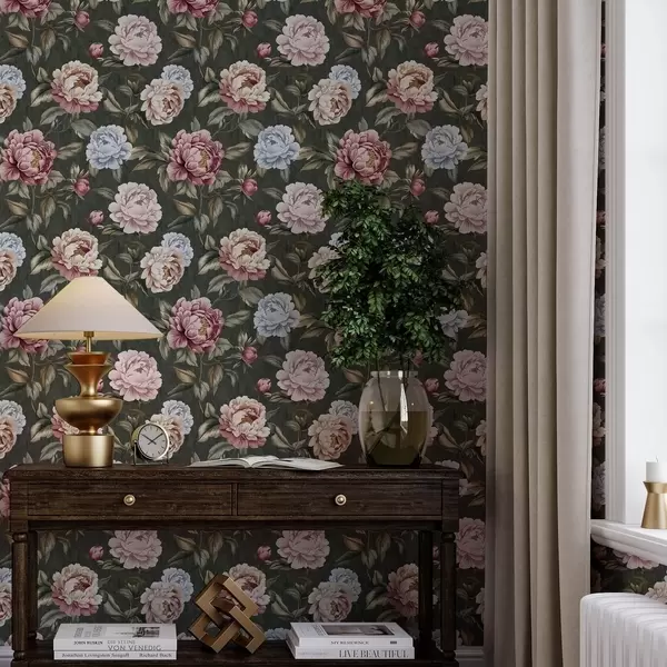 Тапет Божури на тъмнозелен фон Nr. a00106