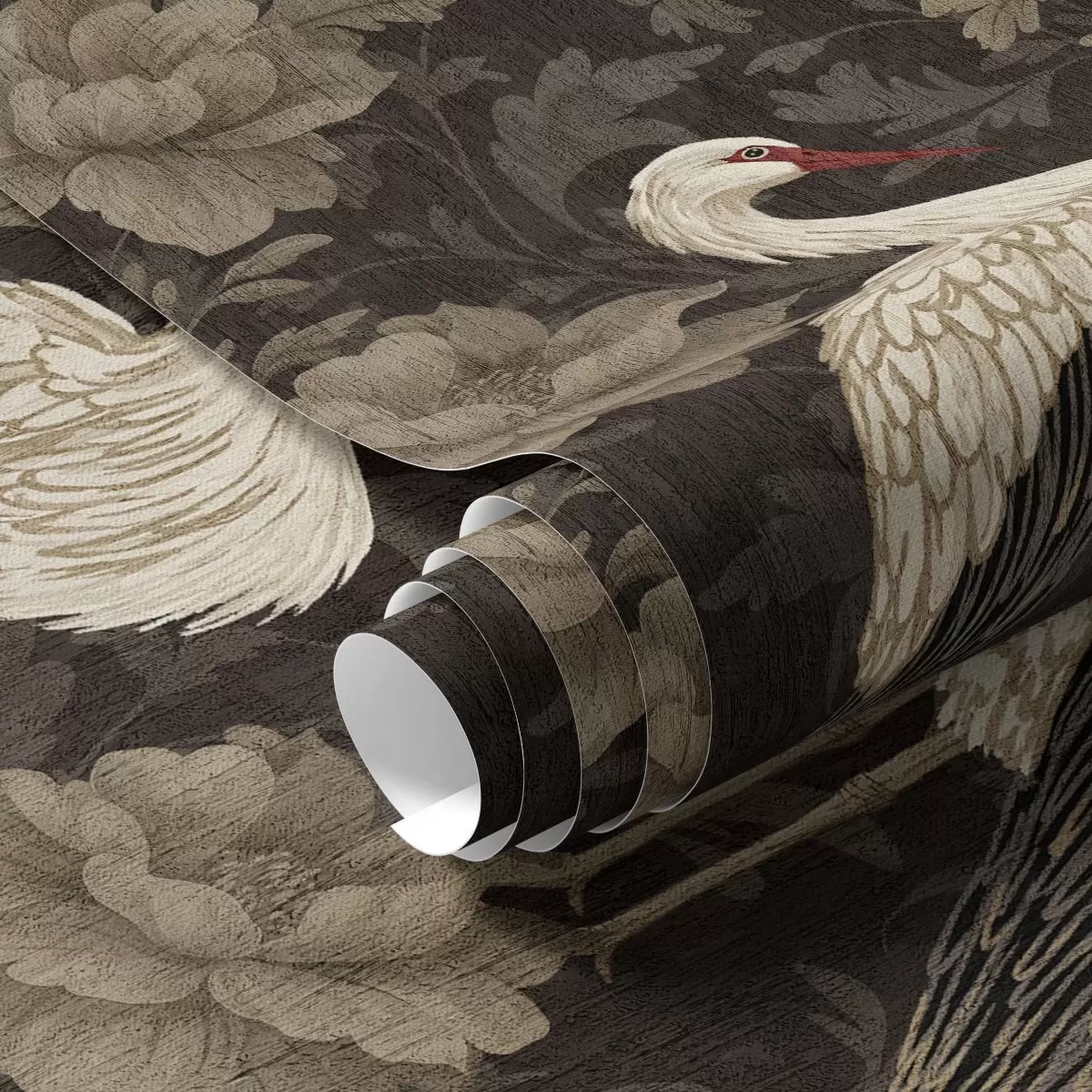 Тапет Жерави сред големи цветя в класическа пастелна палитра Nr. a00108