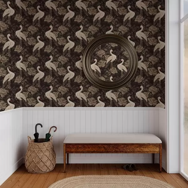 Тапет Жерави сред големи цветя в класическа пастелна палитра Nr. a00108