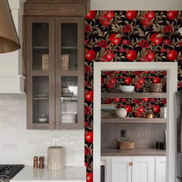 Тапет Нар и цветя на тъмен фон в средиземноморски стил Nr. a00115