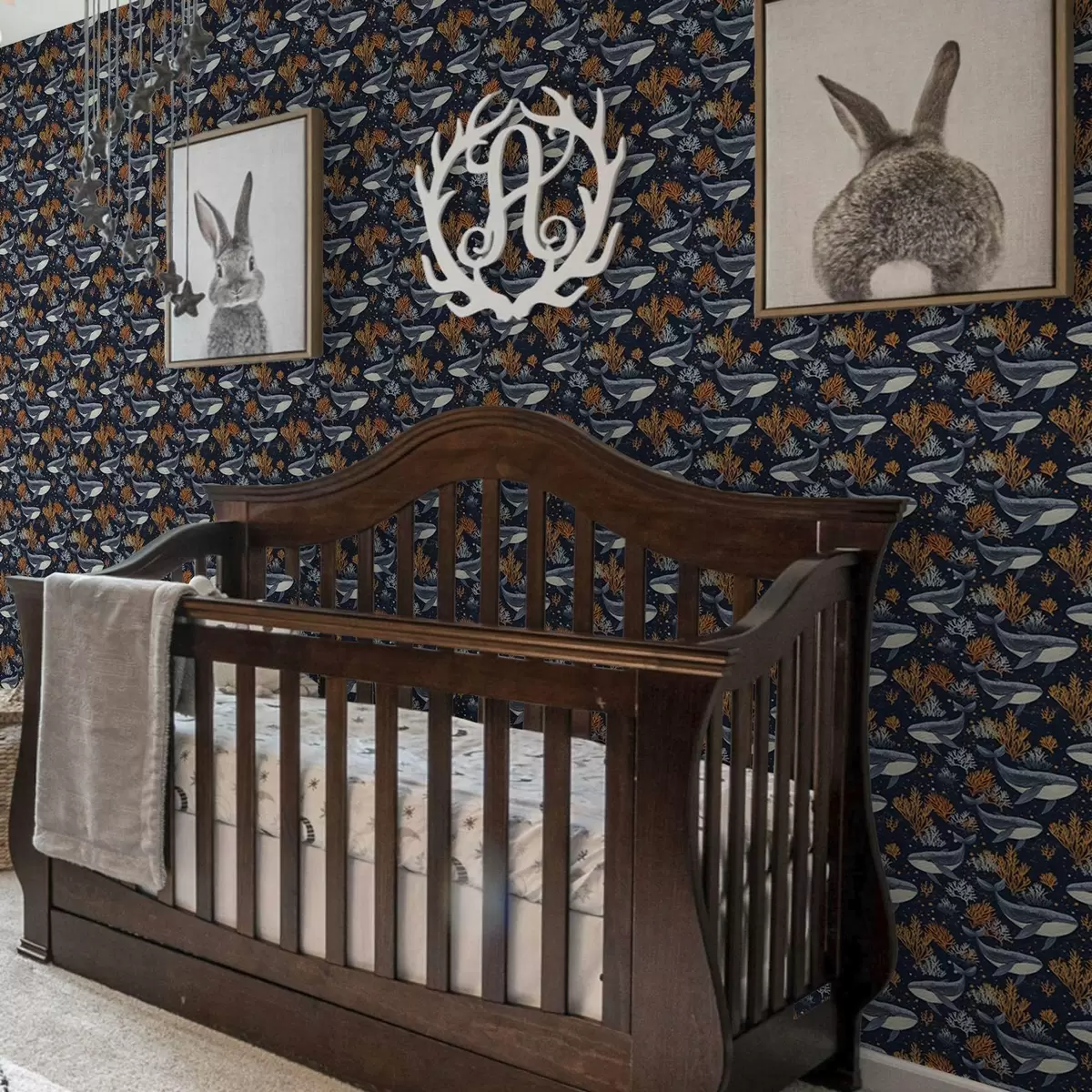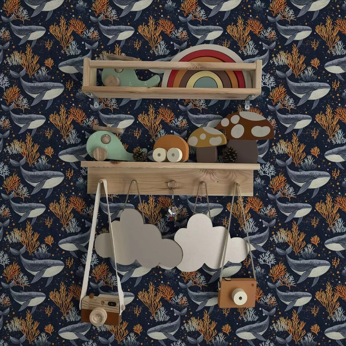 Тапет Морски китове и корали на тъмен фон Nr. a00116