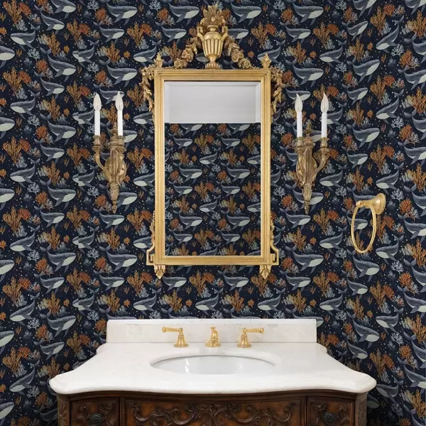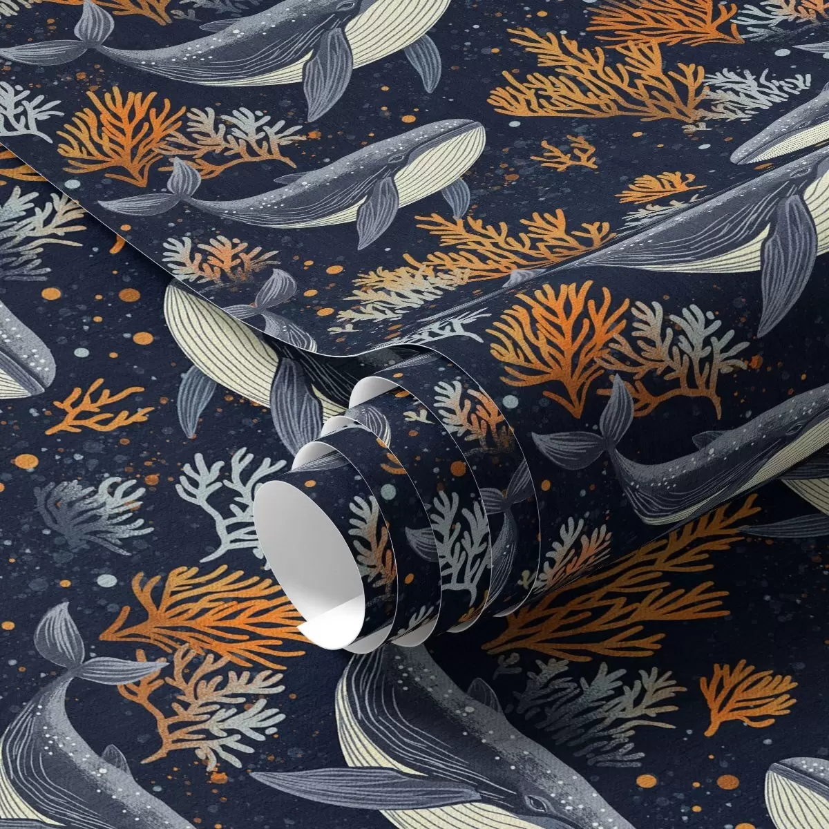 Тапет Морски китове и корали на тъмен фон Nr. a00116