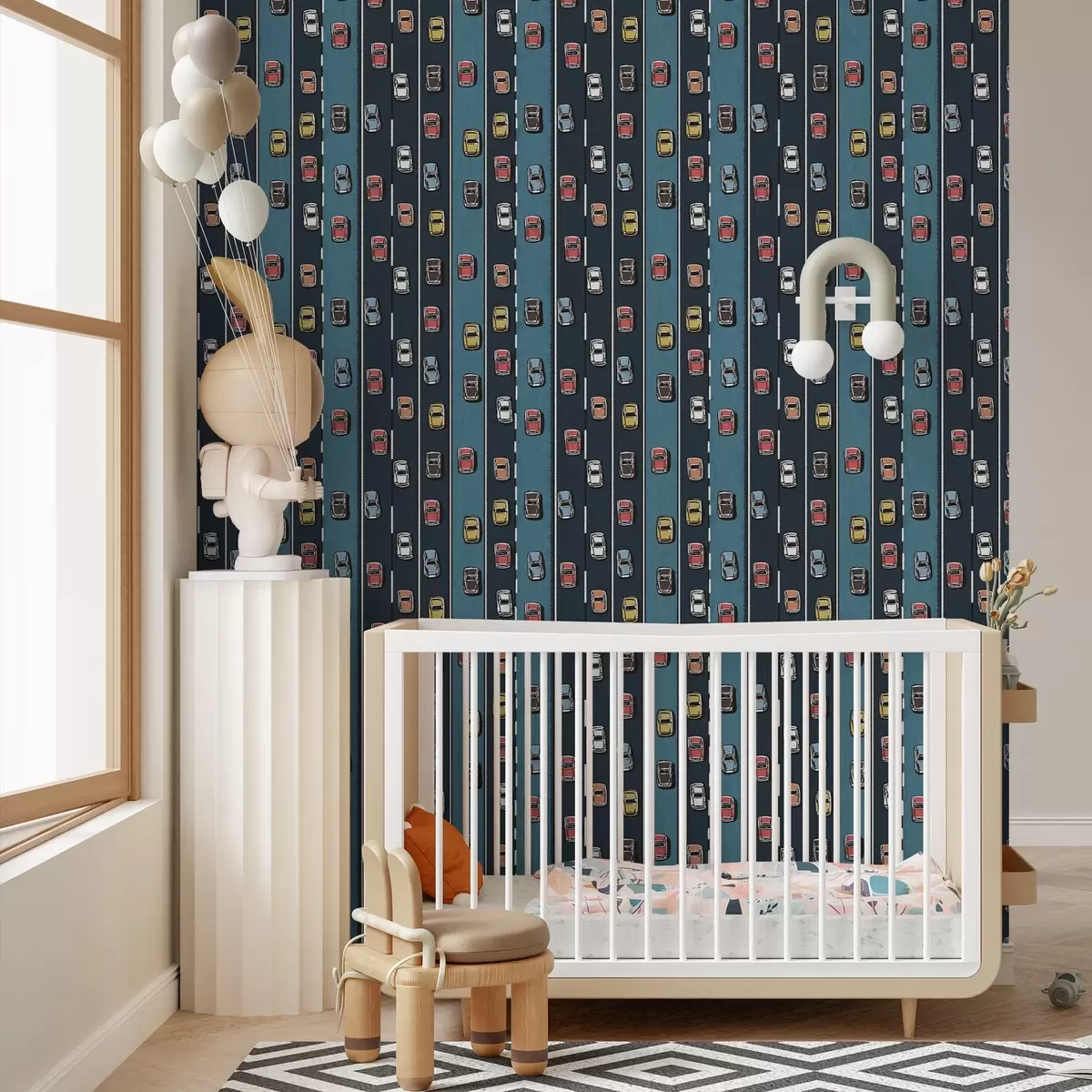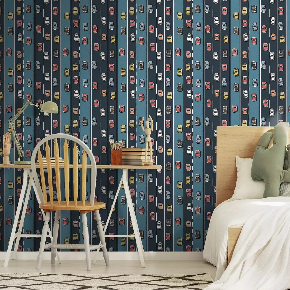 Тапет Ретро автомобил на тъмносин път в стил 60-те години Nr. a00118