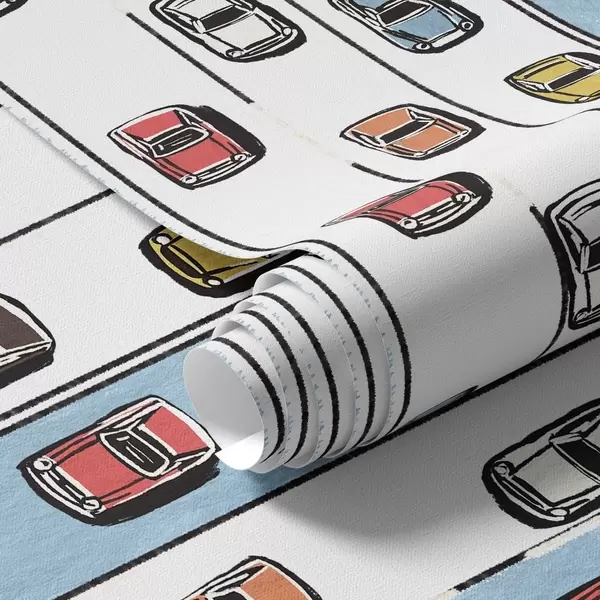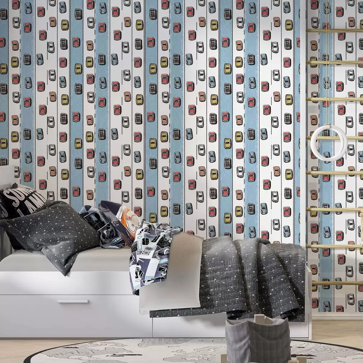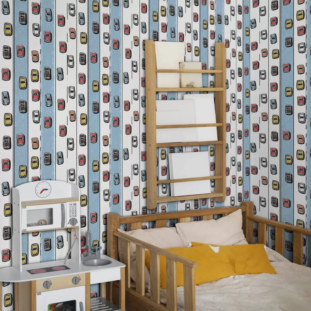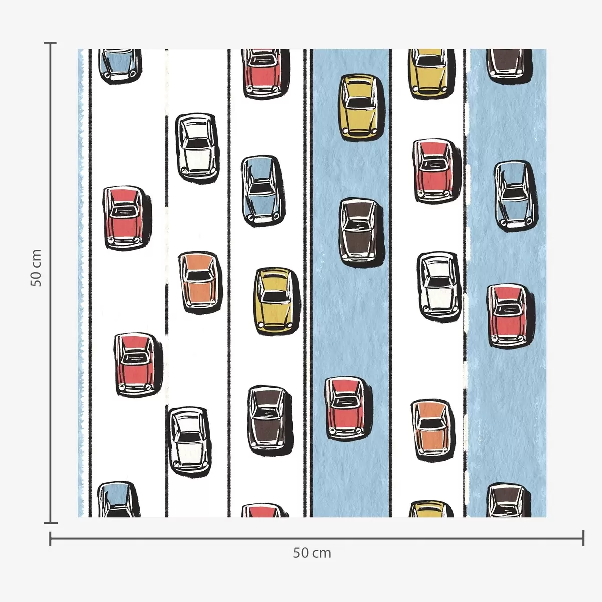 Тапет Ретро автомобил на бял и син път в стила на 60-те години Nr. a00118v2
