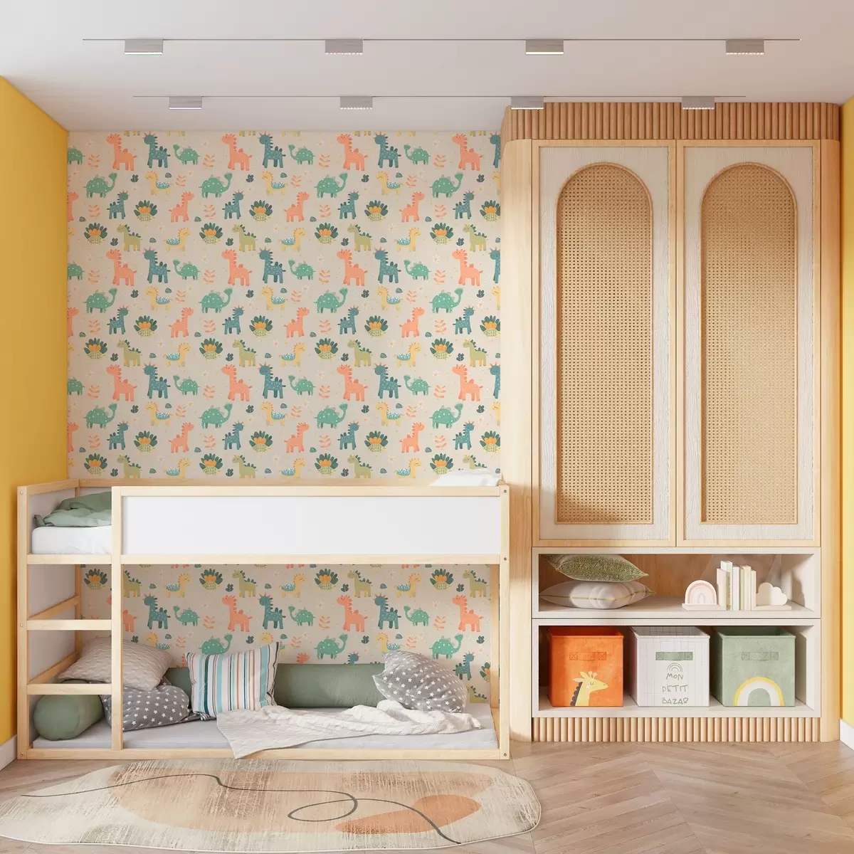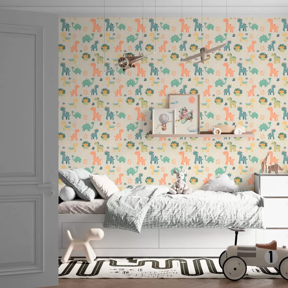 Тапет Детски динозаври в пастелни цветове на светъл фон Nr. a00125