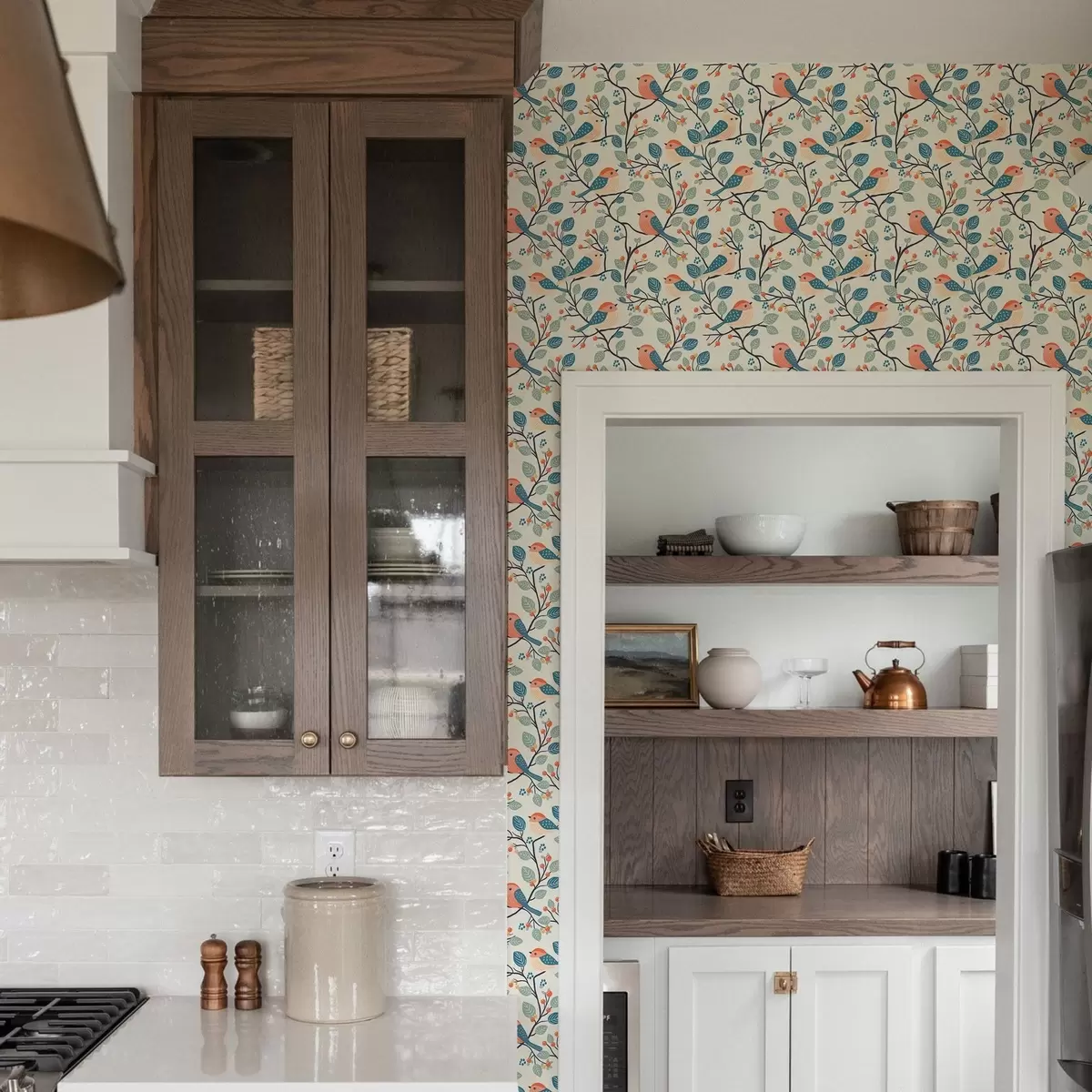 Тапет Птици по клоните и плодове в топли цветове Nr. a00128v1
