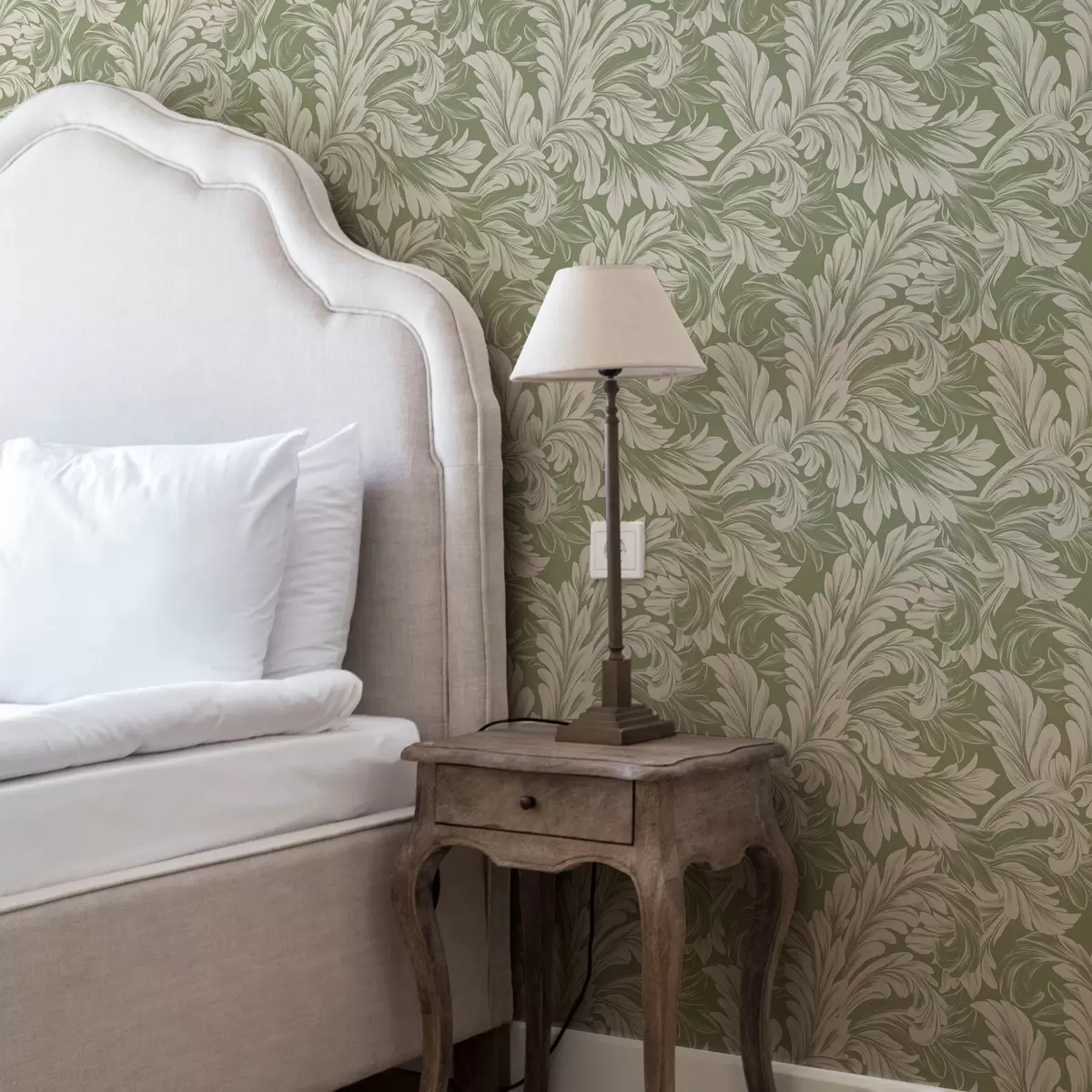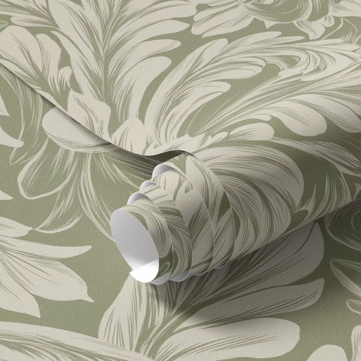 Тапет Барок с кремави листа на зелен фон Nr. a00135
