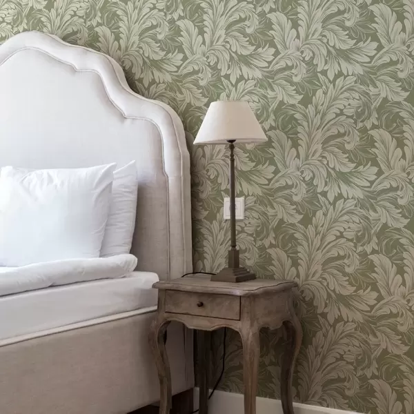 Тапет Барок с кремави листа на зелен фон Nr. a00135
