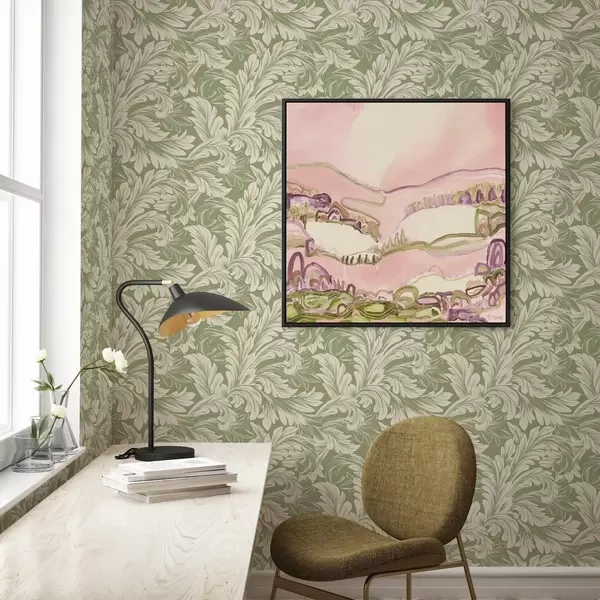 Тапет Барок с кремави листа на зелен фон Nr. a00135