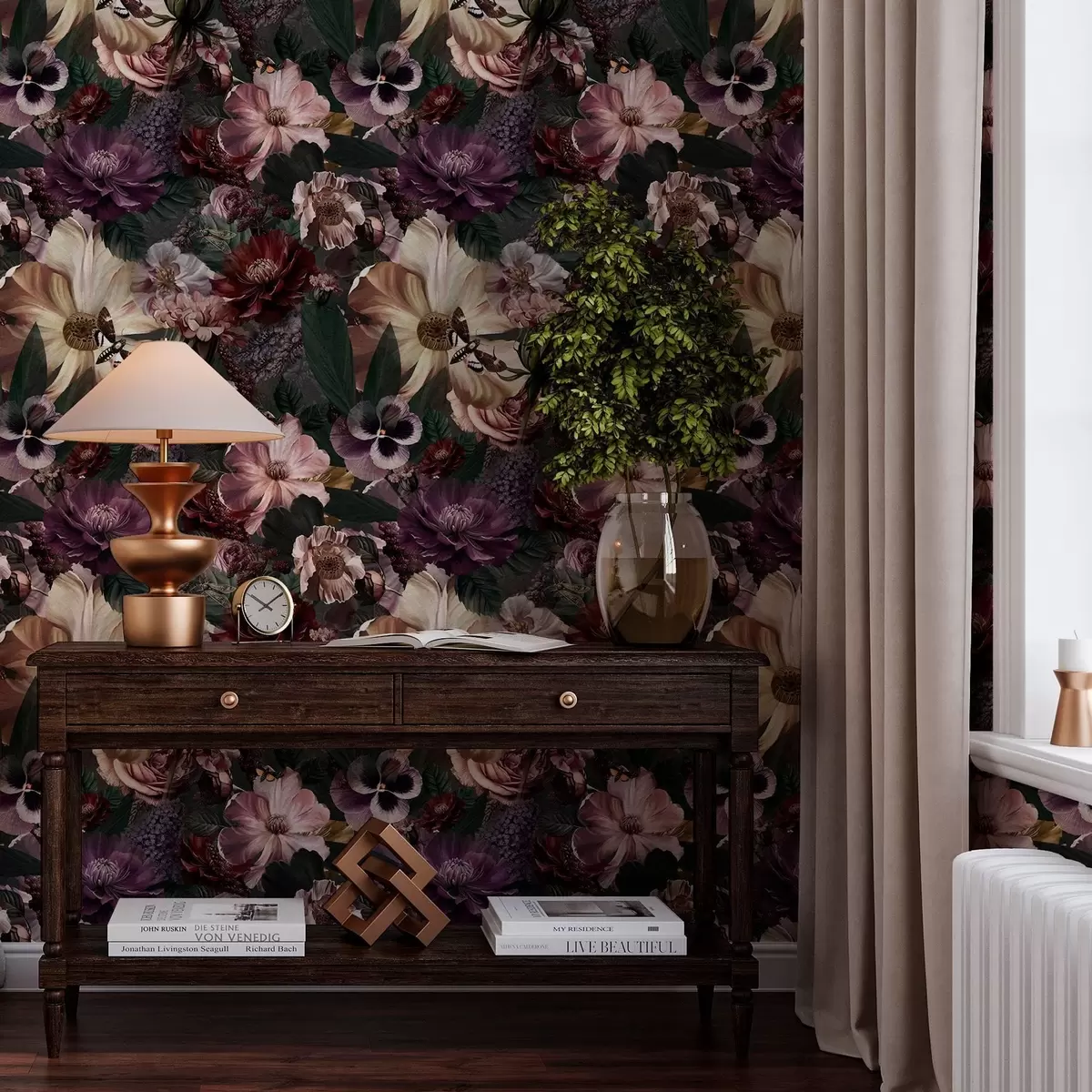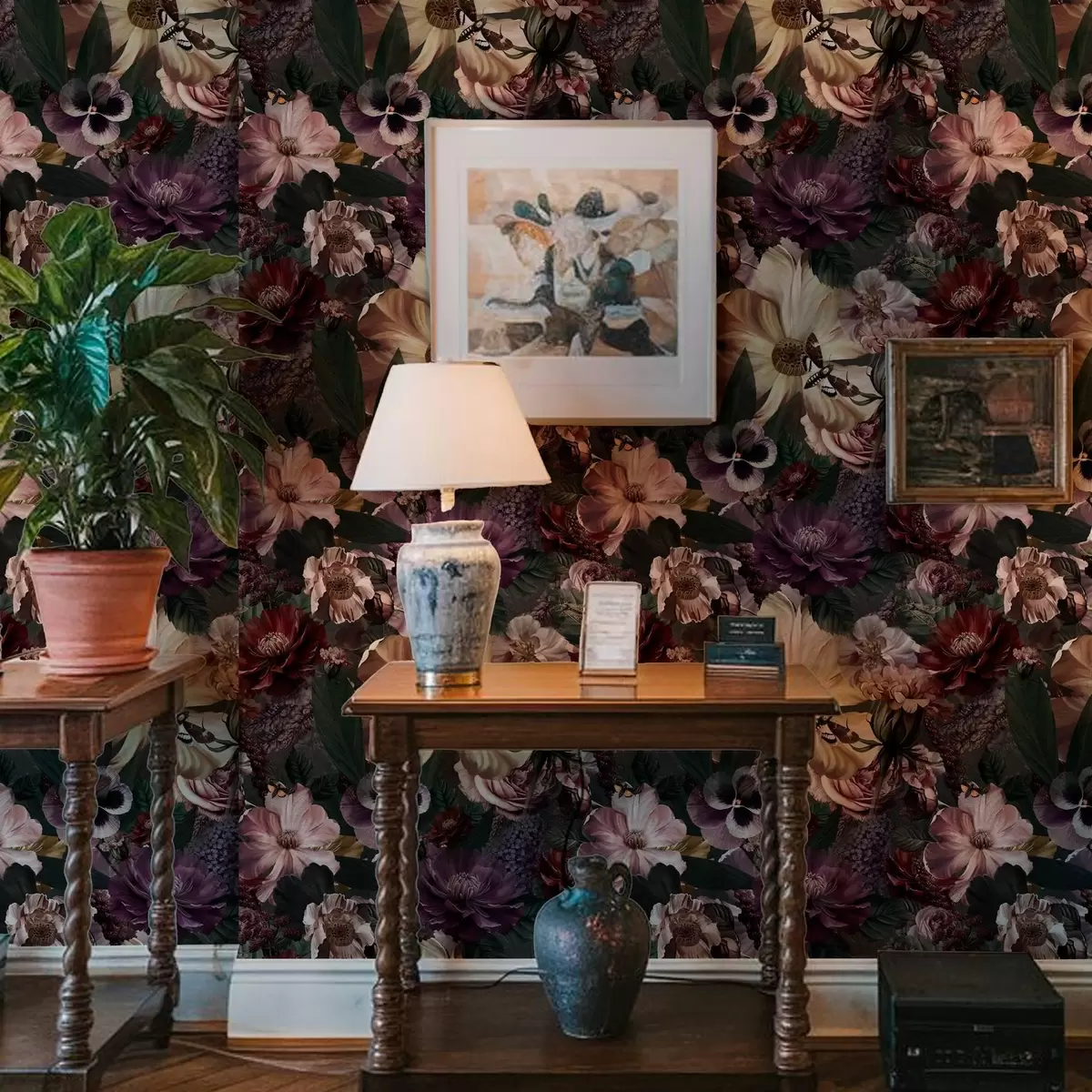 Тапет Художествен флорален печат в тъмни цветове Nr. a00147