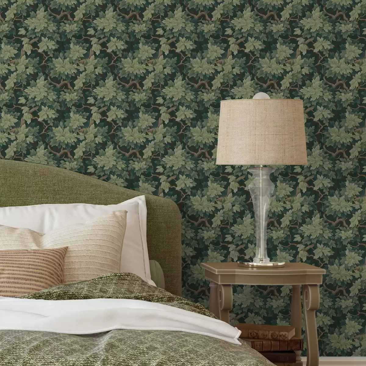 Тапет Дъбови листа на зелен фон Nr. a00151