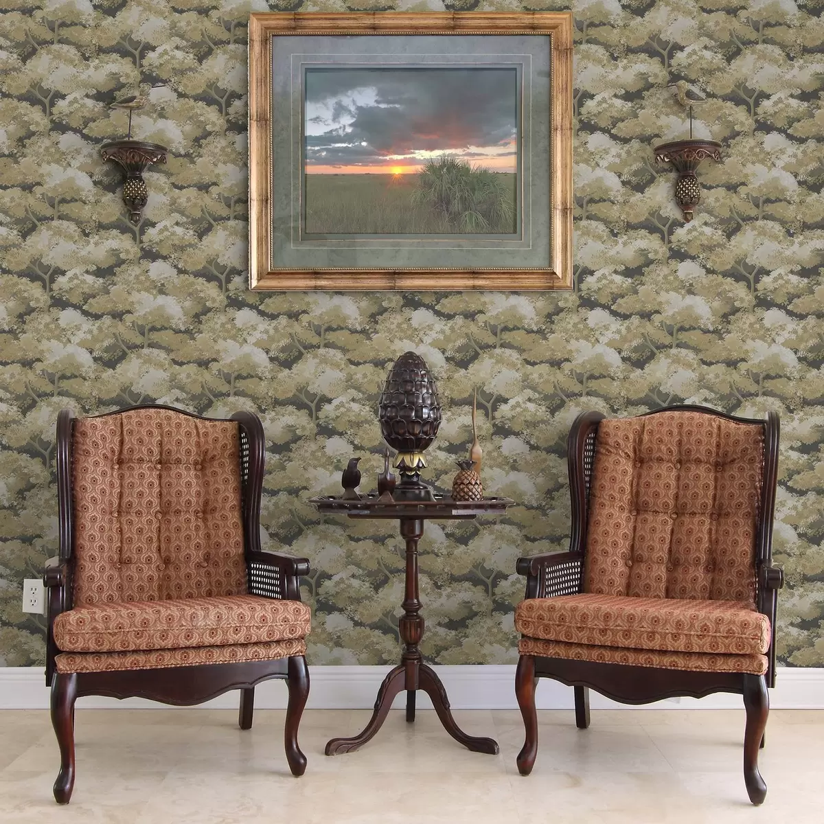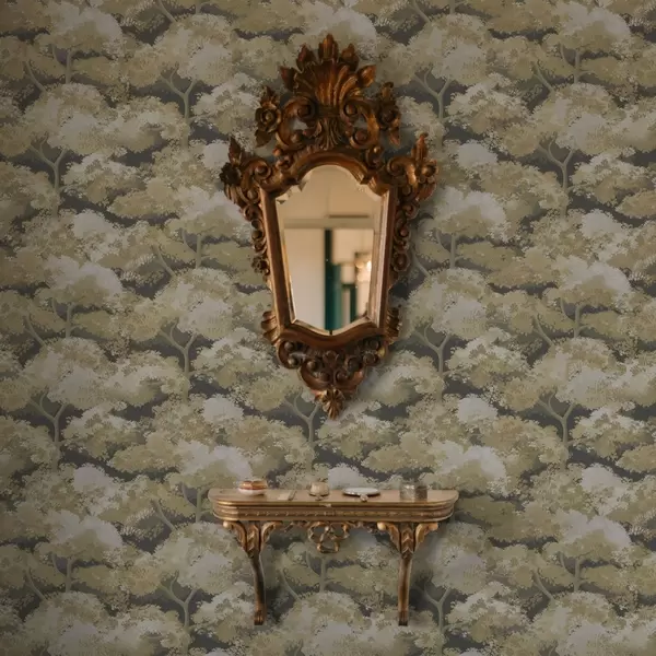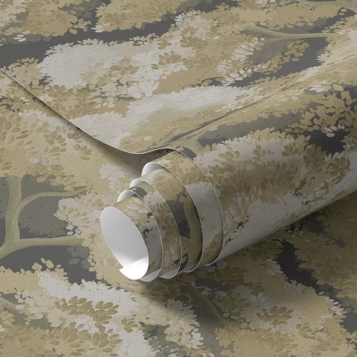Тапет Тъмна горска шарка с дървета в топли цветове Nr. a00170