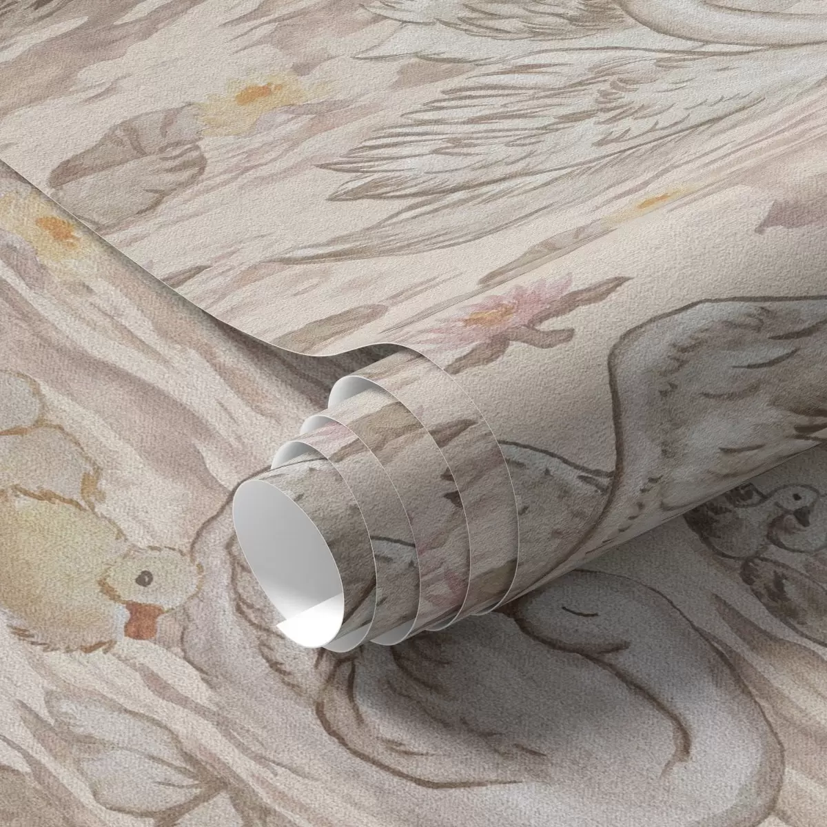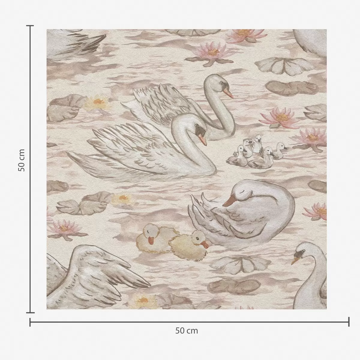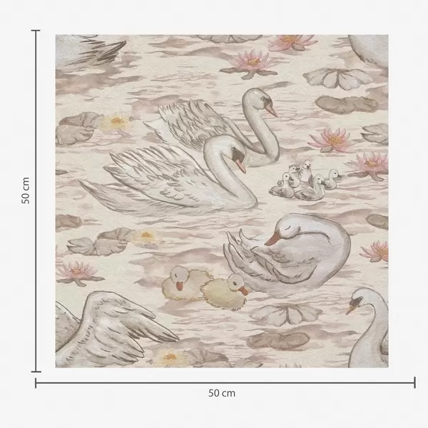Тапет Лебеди с пиленца на розов фон с водни лилии Nr. a00176