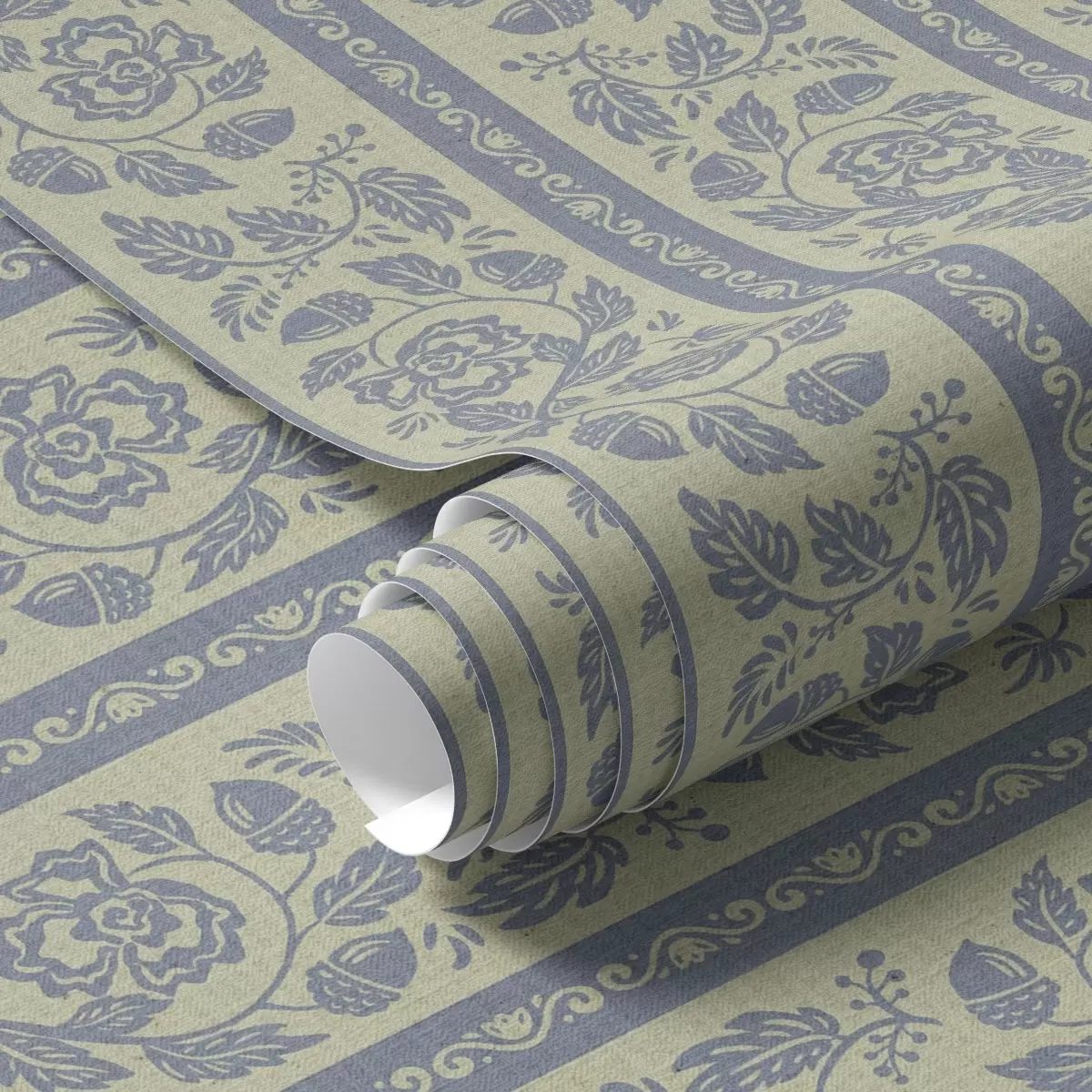 Тапет Флорален орнамент на райета с жълъди в сини и бежови тонове Nr. a00181