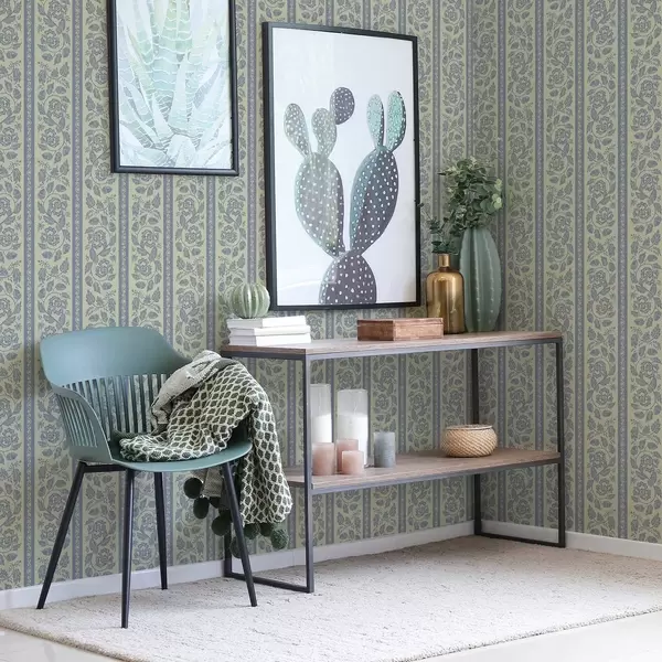 Тапет Флорален орнамент на райета с жълъди в сини и бежови тонове Nr. a00181