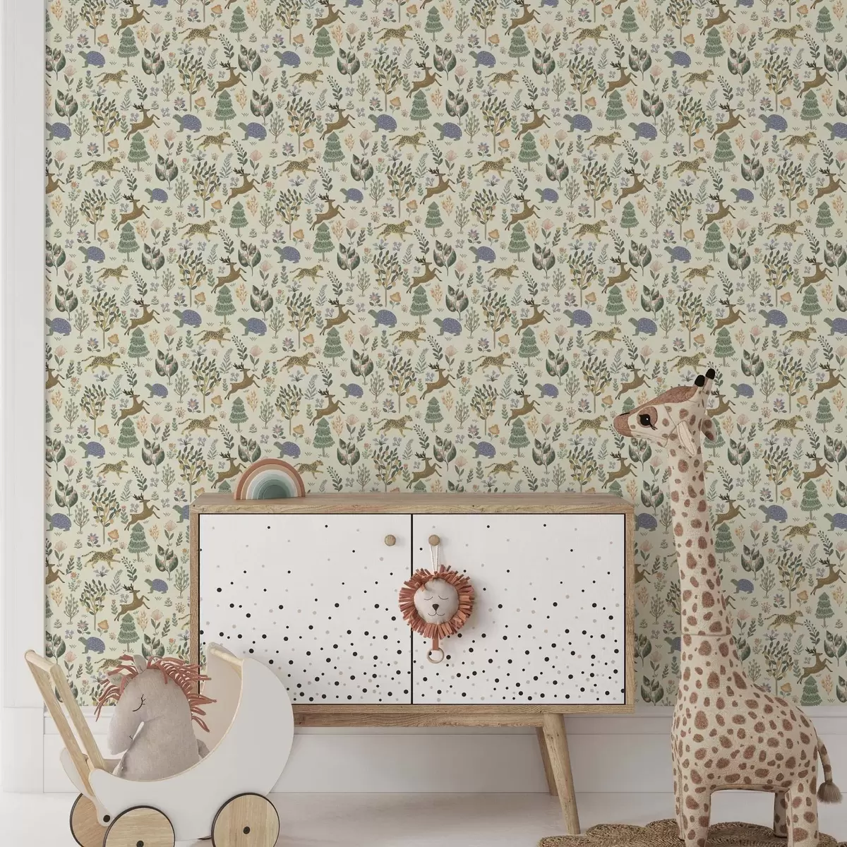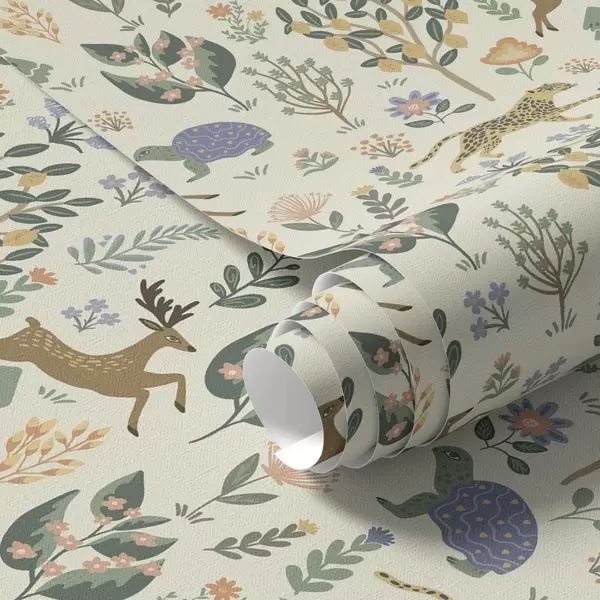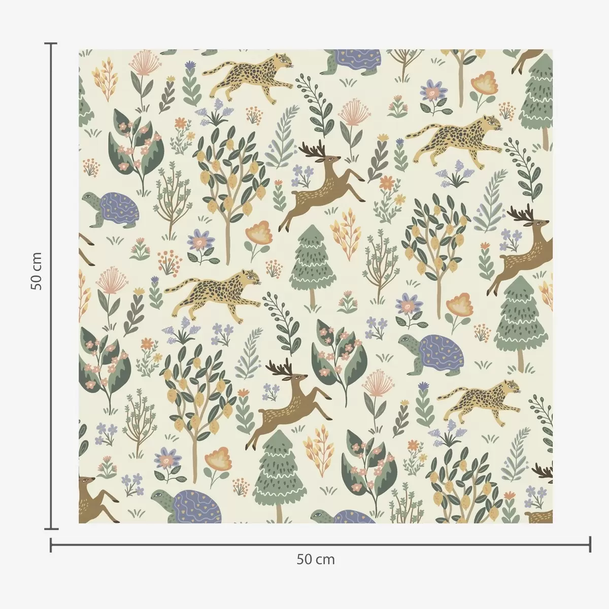 Тапет Ретро илюстрация с леопарди, дървета и елени Nr. a00184