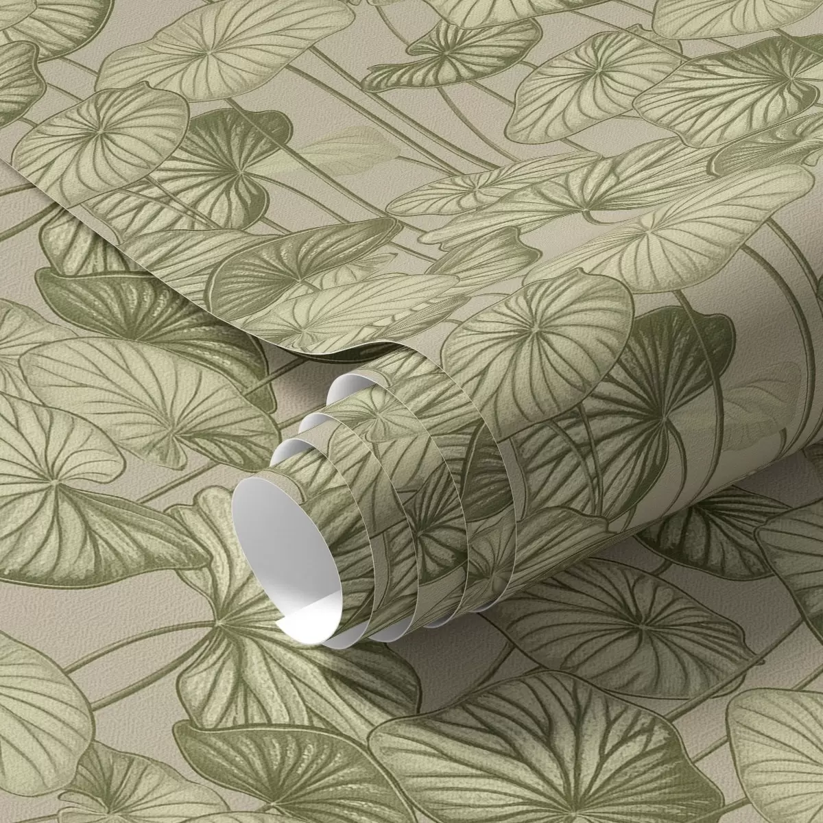 Тапет Графични лотосови листа в ретро стил на бежов фон Nr. a00188