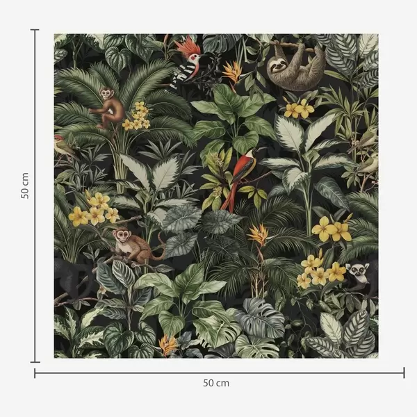 Тапет Тропическа джунгла с маймуни, птици и гъста зеленина Nr. a00191