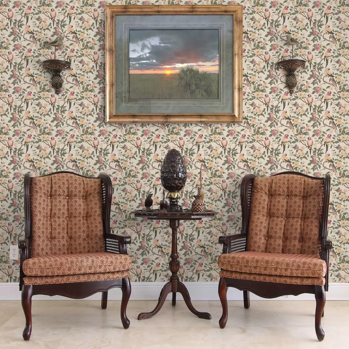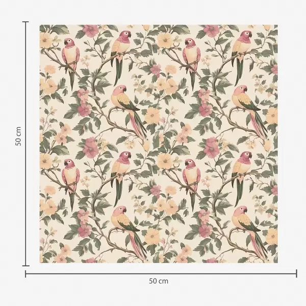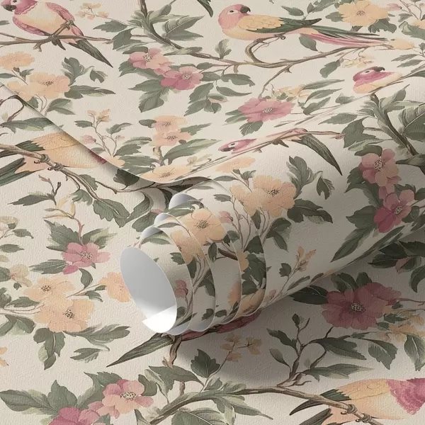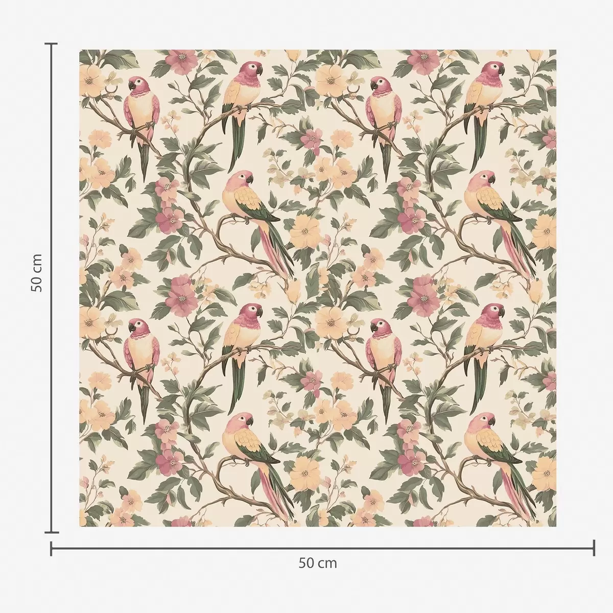 Тапет Тропически птици върху цъфтящи клони в пастелни цветове Nr. a00199