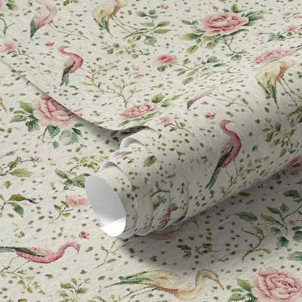 Тапет Пастелно розови рози и птици в стил шаби шик Nr. a00201