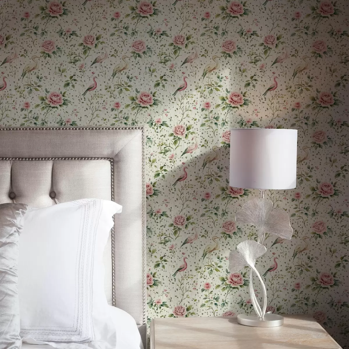 Тапет Пастелно розови рози и птици в стил шаби шик Nr. a00201