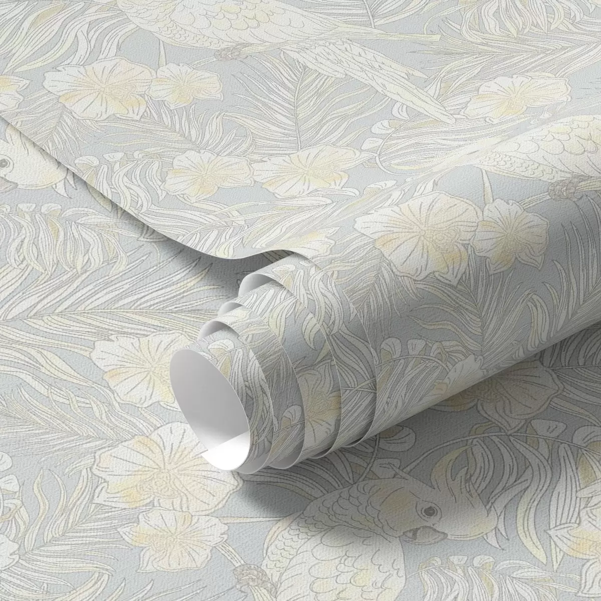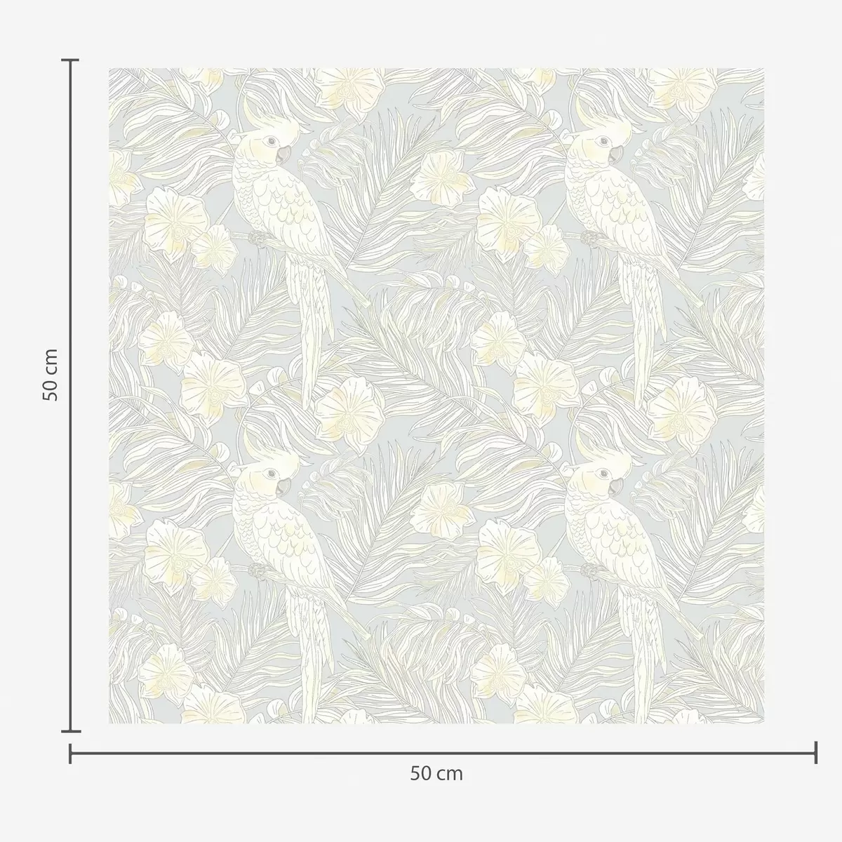 Тапет Лека тропическа щампа с какаду и цветя на син фон Nr. a00203