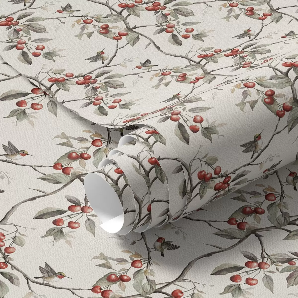Тапет Птици сред черешови клони с червени плодове Nr. a00206