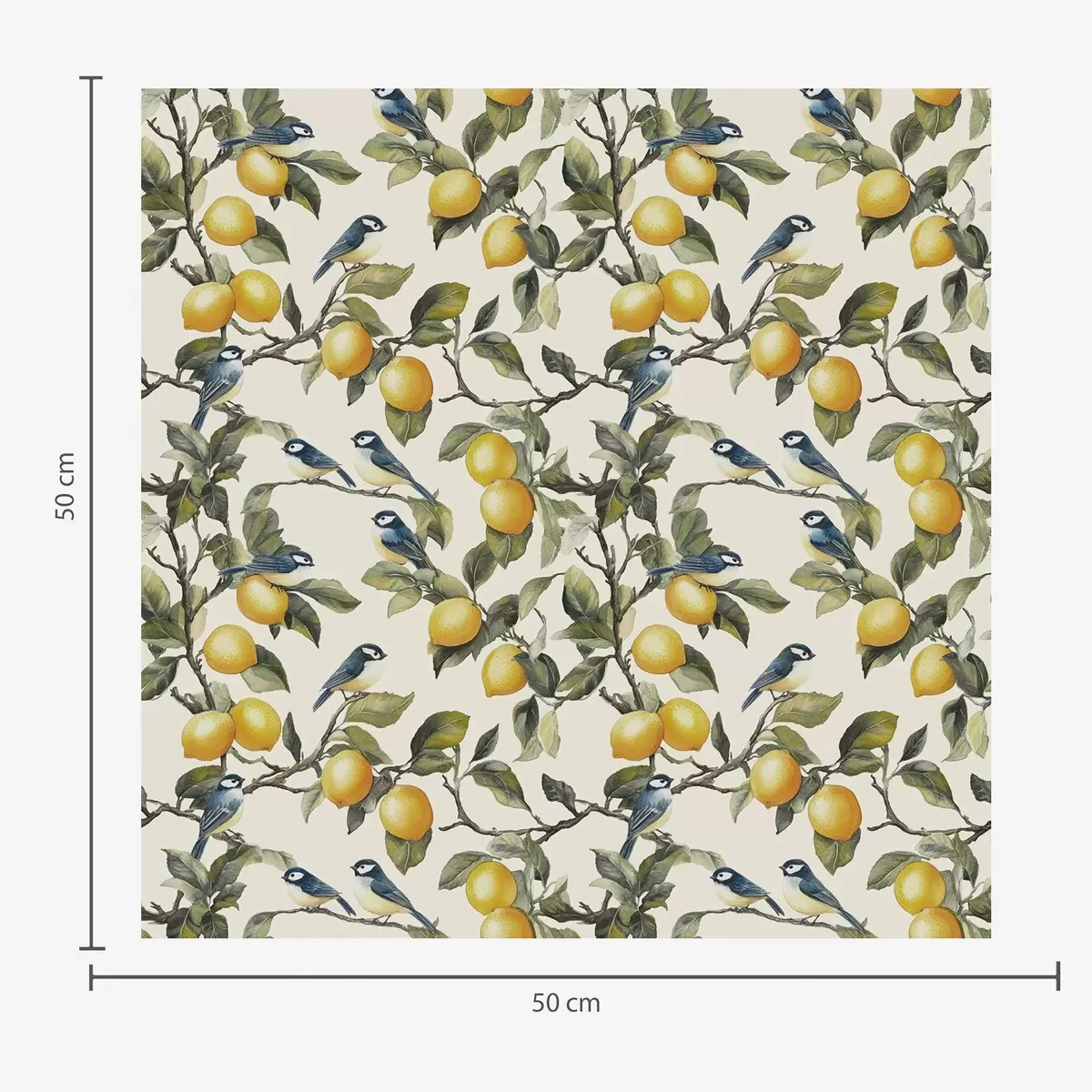Тапет Птици и лимони по клоните, акварелна ботаническа рисунка Nr. a00207