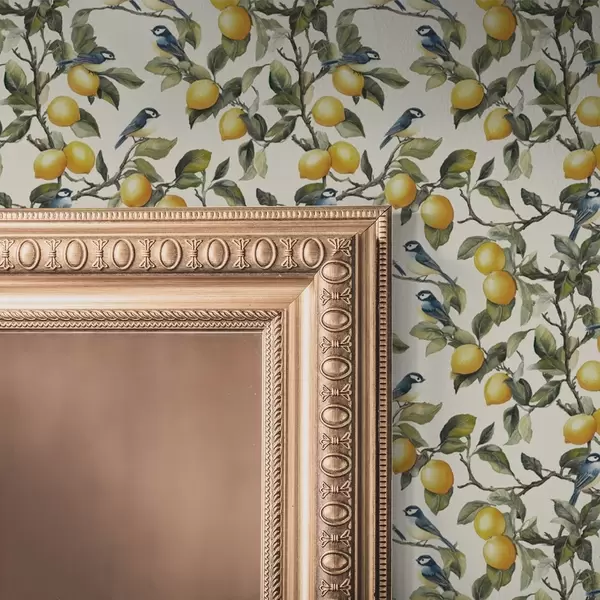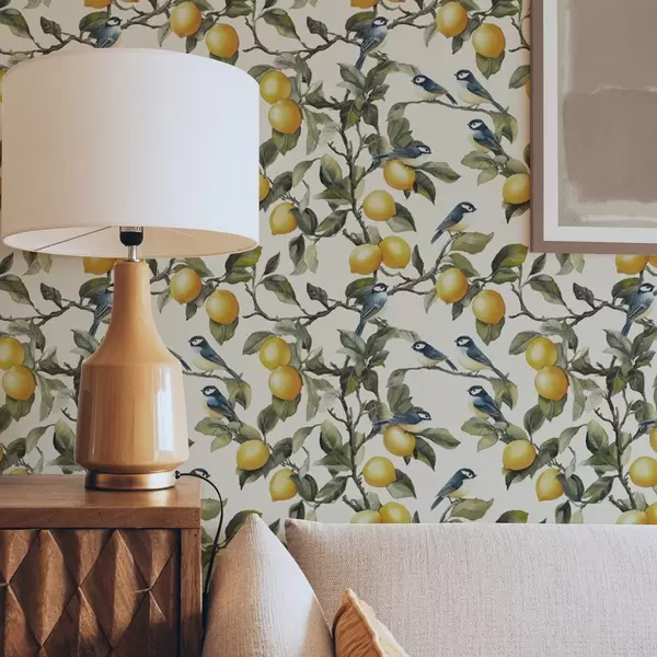 Тапет Птици и лимони по клоните, акварелна ботаническа рисунка Nr. a00207