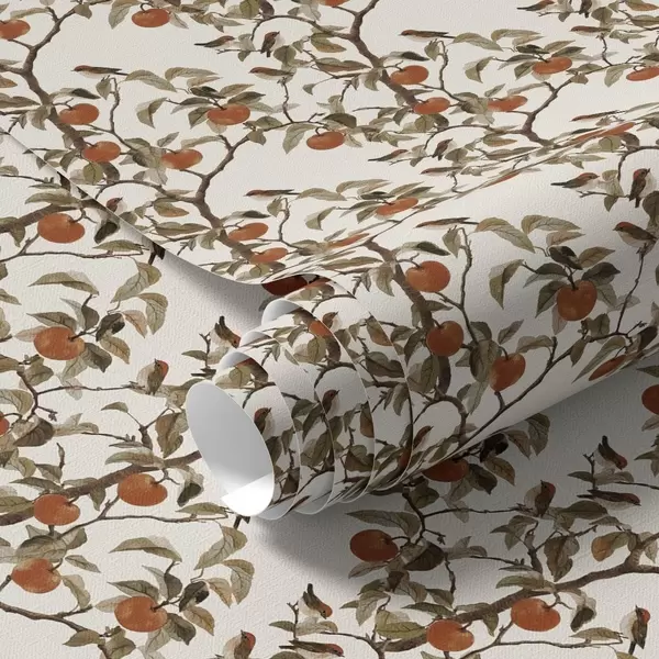 Тапет Птици и портокали върху клони, винтидж ботаника Nr. a00208