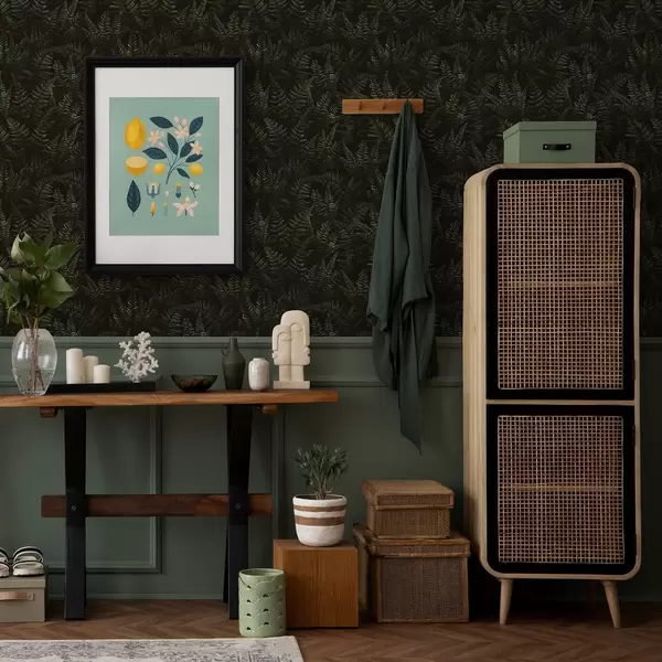Тапет Тъмна папрат, горски орнамент, нощни цветове Nr. a00214