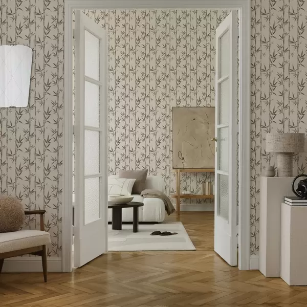 Тапет Бежова бамбукова шарка с листа в японски стил Nr. a00236