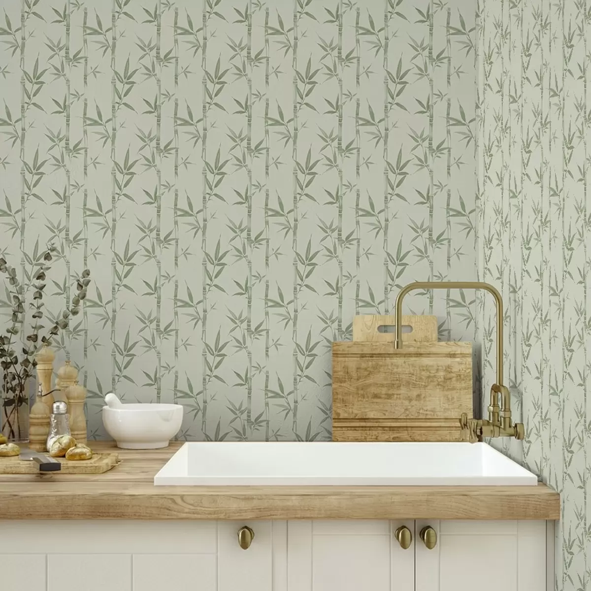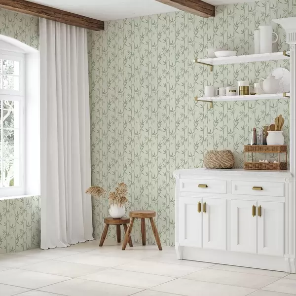 Тапет Светлозелен бамбук на мек пастелен фон Nr. a00236v1