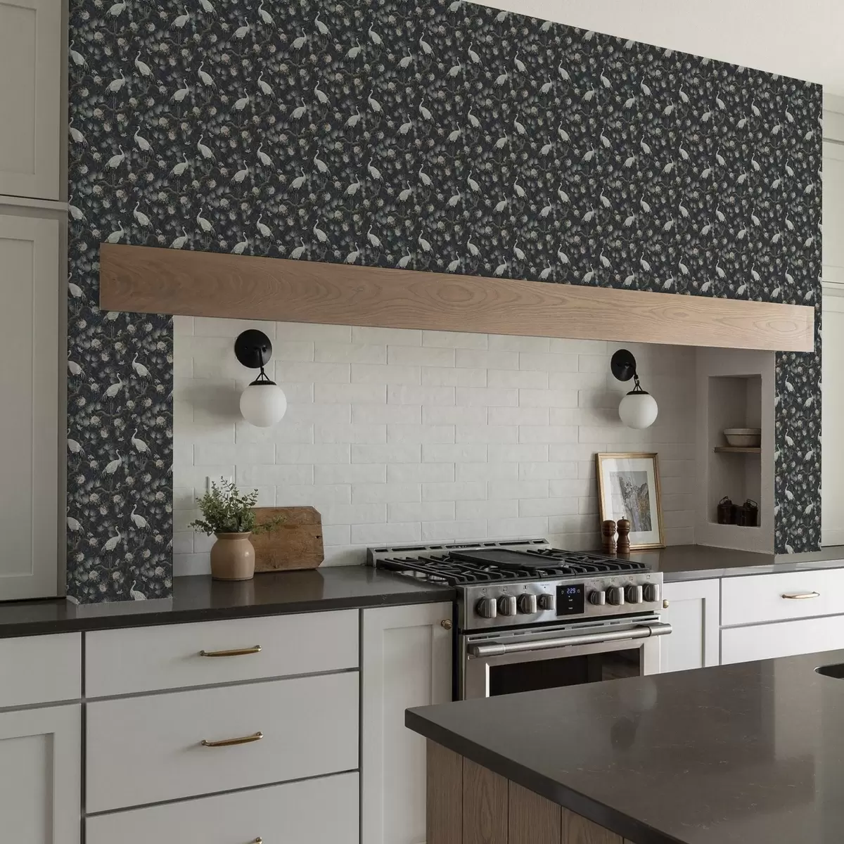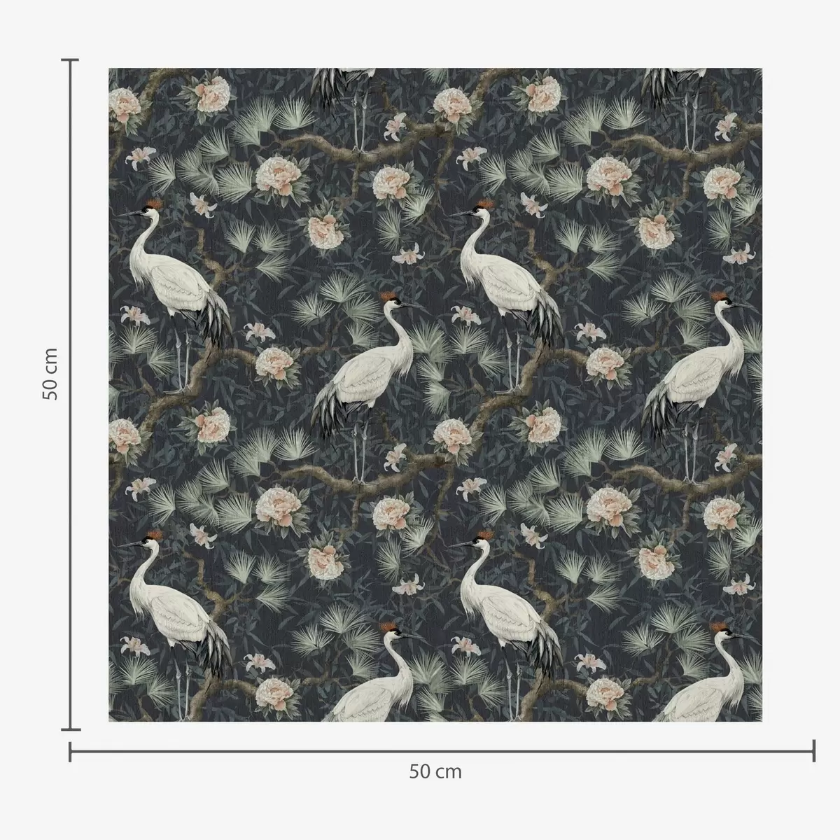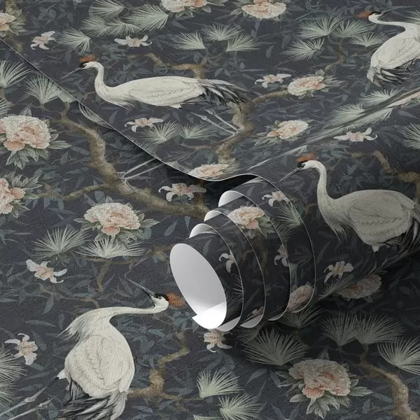 Тапет Жерави сред борове и божури на тъмен фон Nr. a00241