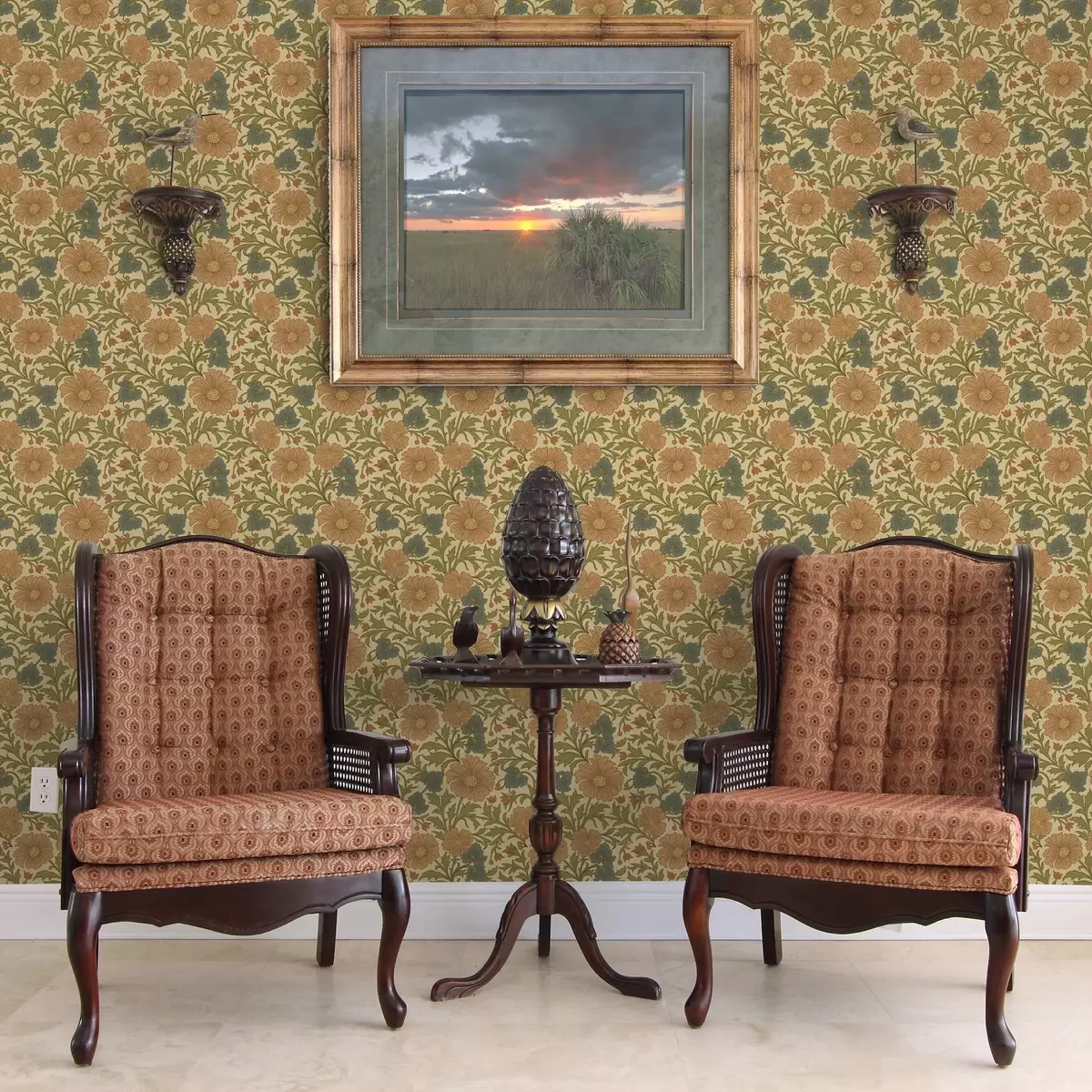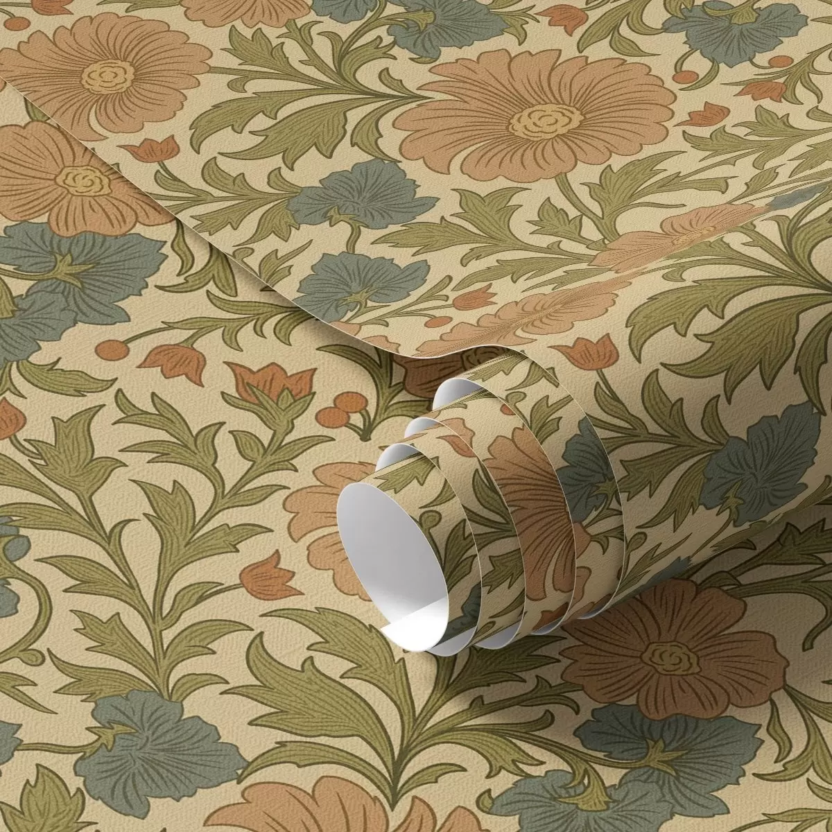 Тапет Ретро модел с оранжеви и сини цветя Nr. a00245
