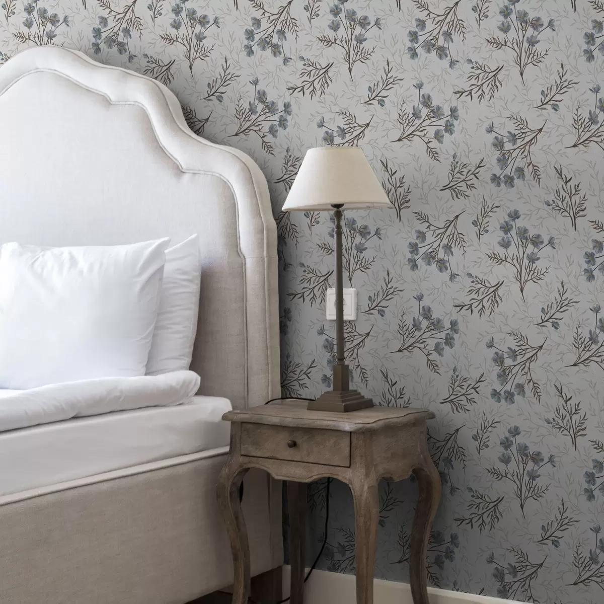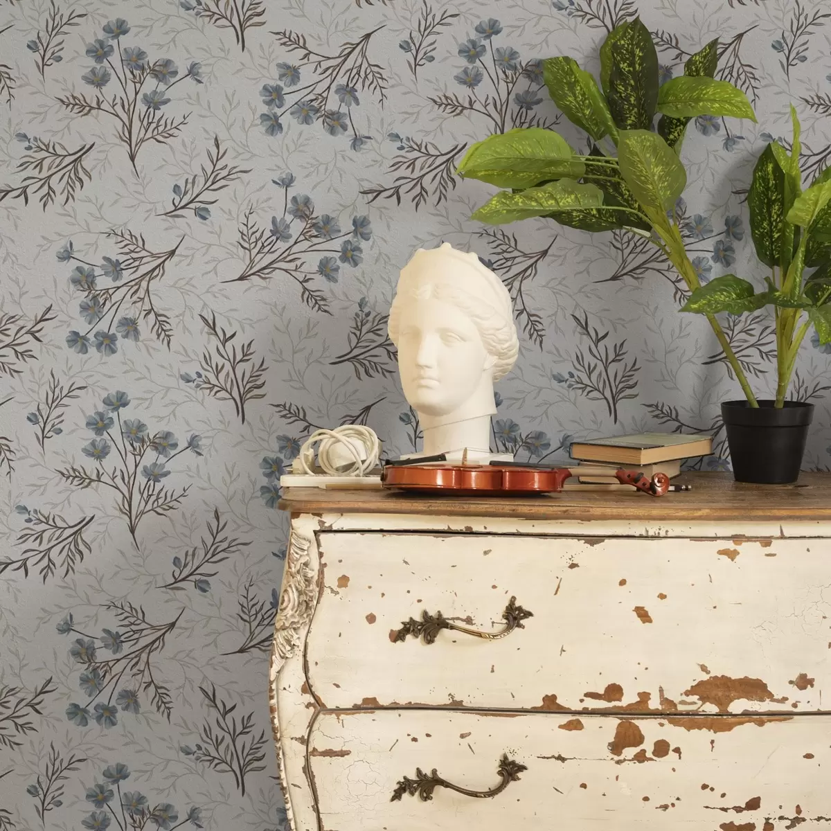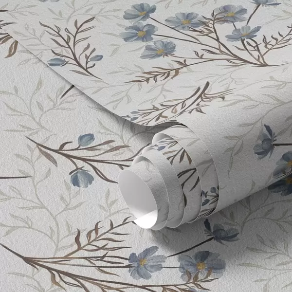 Тапет Сини цветя и светли клони на бял фон Nr. a00265v1