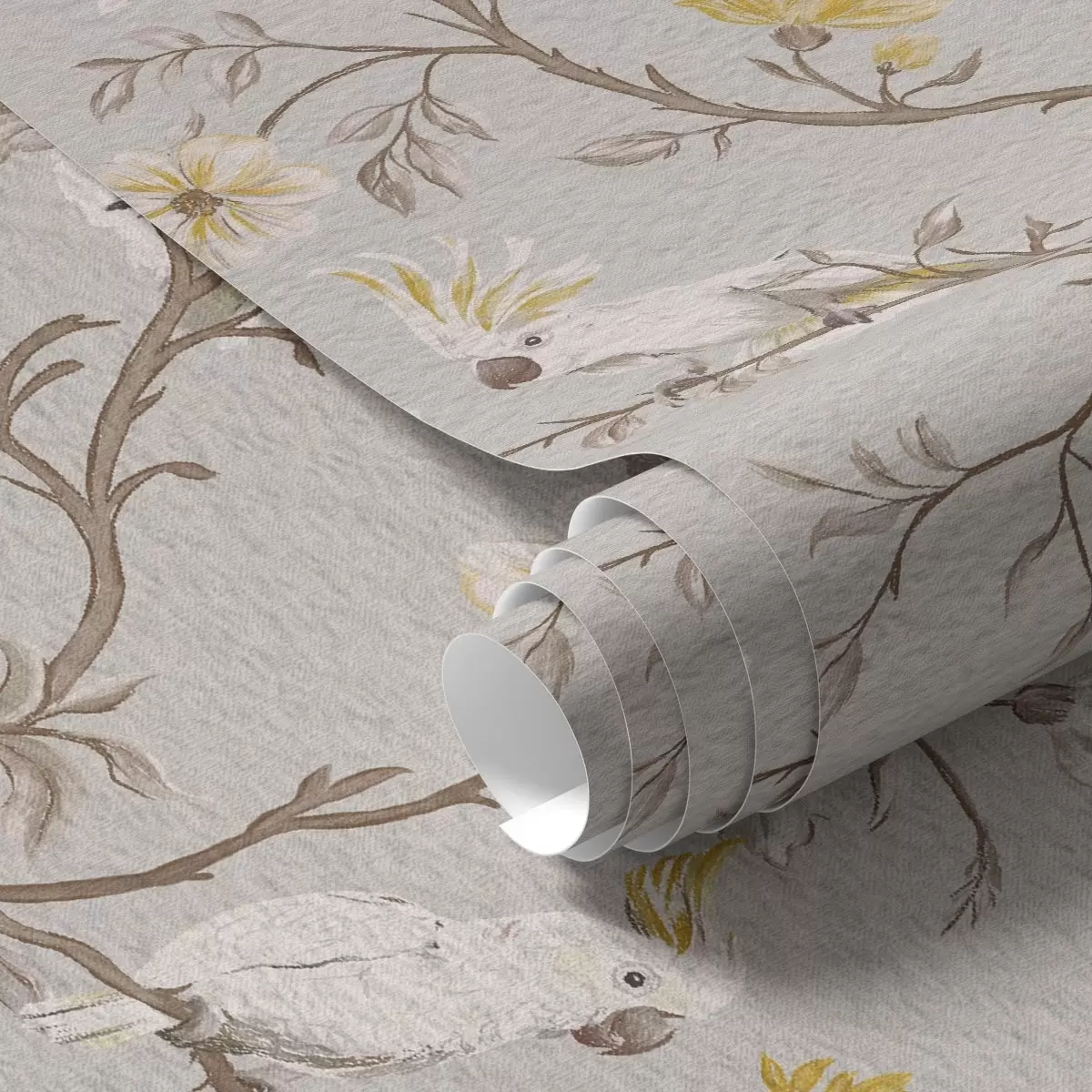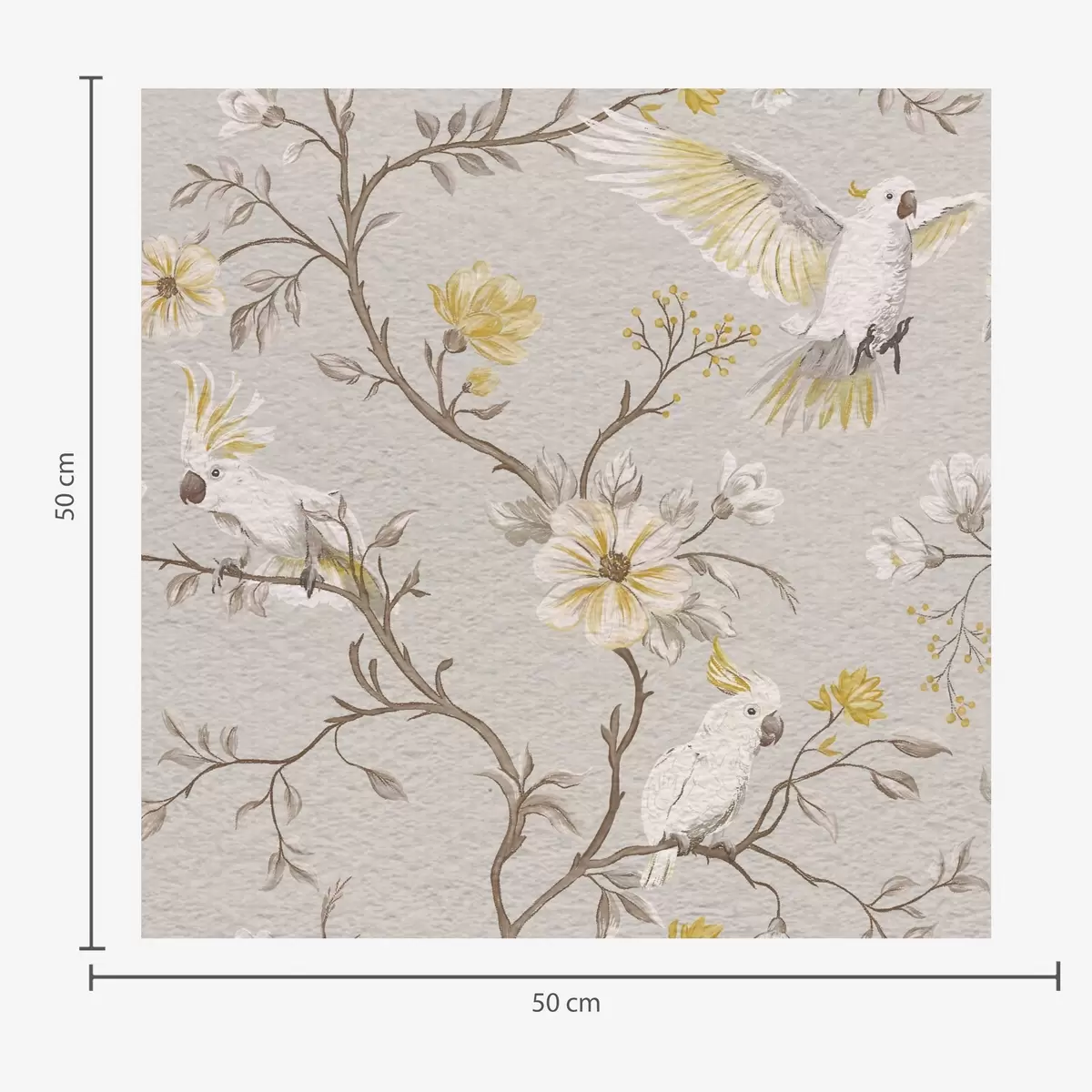 Тапет Папагали и жълти цветя на светъл фон Nr. a00270
