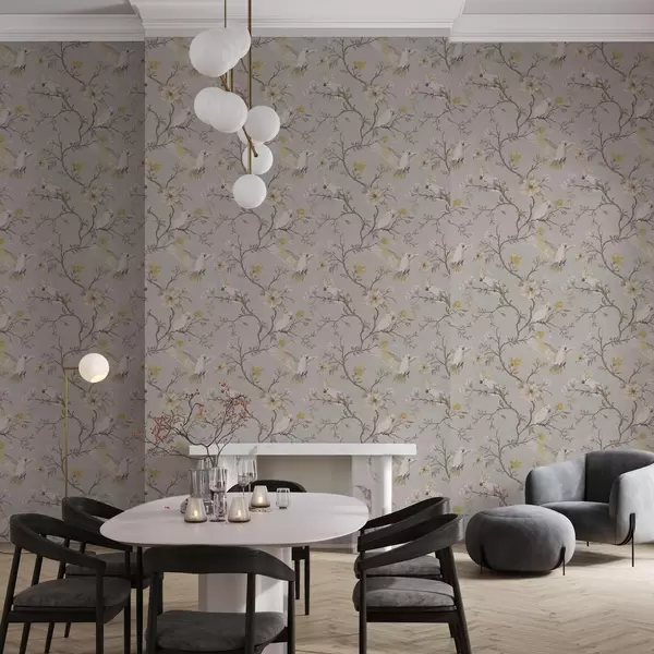 Тапет Папагали и жълти цветя на светъл фон Nr. a00270