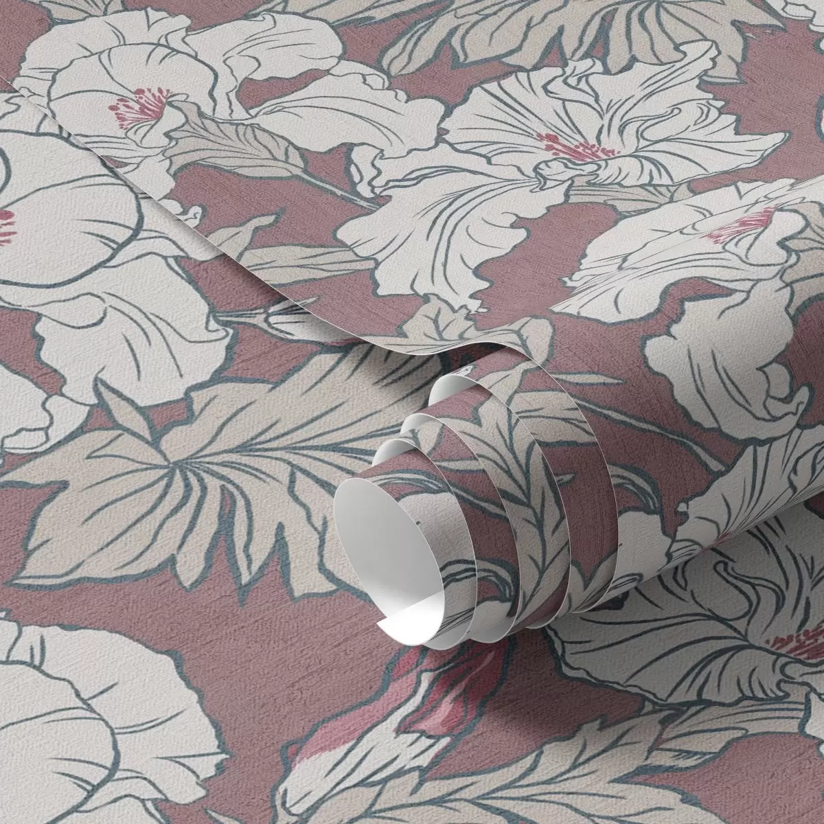 Тапет Бял хибискус на розов фон с червени пъпки Nr. a00272